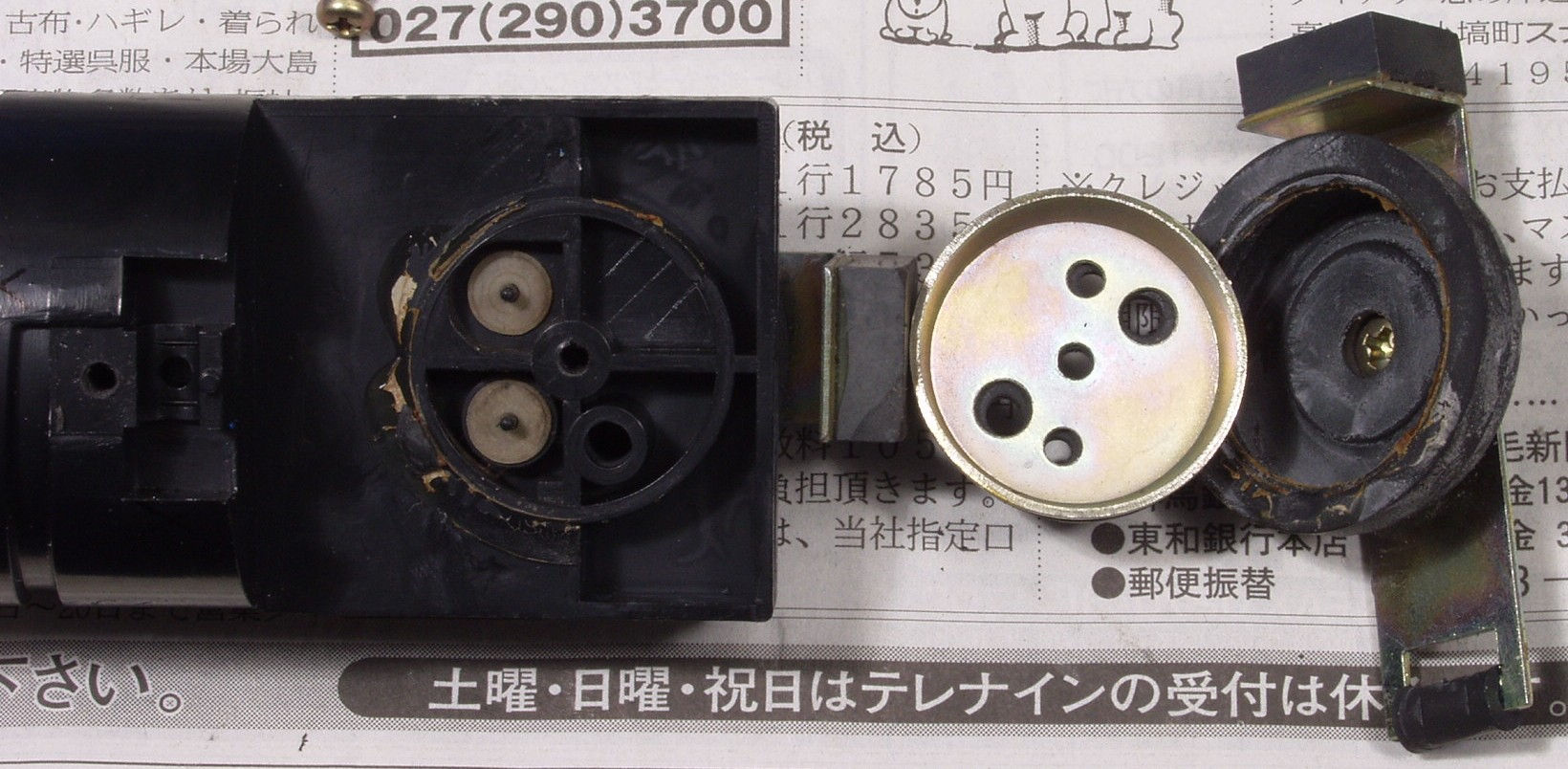 1.パイロットランプのカバーが外れて本体内部に脱落している