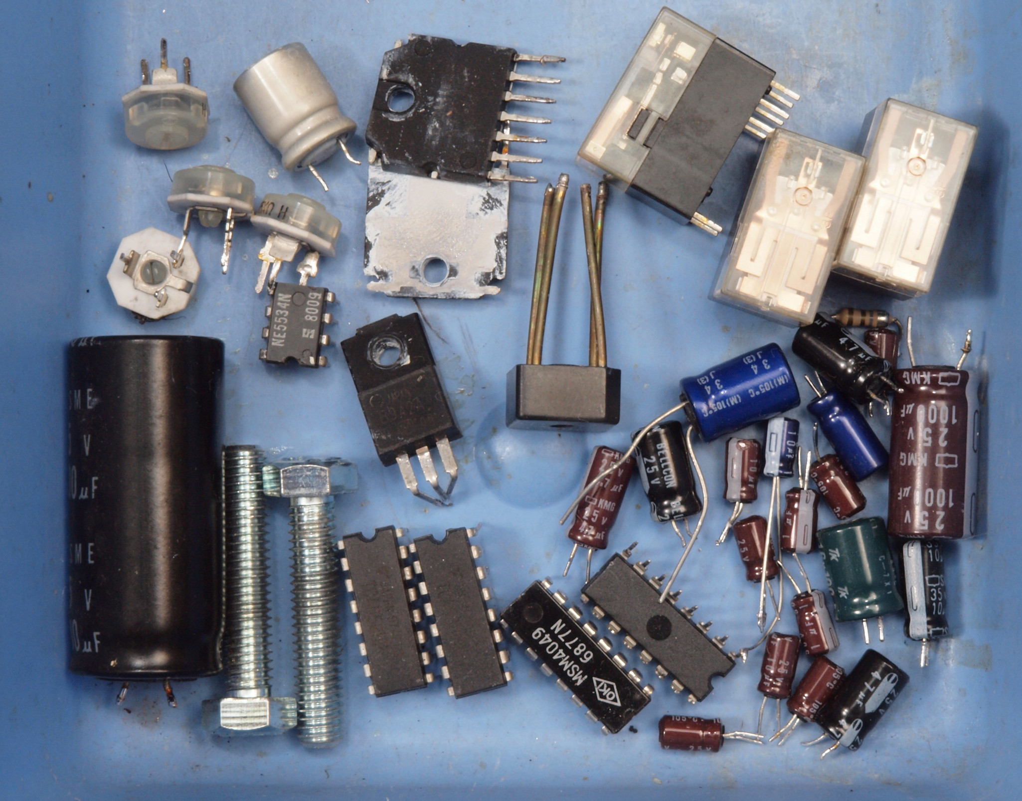 | C12 .修理後 電源部整流基板。 電解コンデンサー3個、リレー2個、整流ブリッジダイオード1個、TR(トランジスター)1個交換。フイルムコンデンサー2個、整流ブリッジダイオードに放熱器追加。 | ||||||||||||||||||||||||||||||||||||||||||||||
