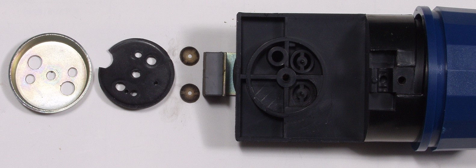 | C4A. 修理後 ポンプユニット組み付け完成、ゴムの所には、シリコン接着剤を塗布する |