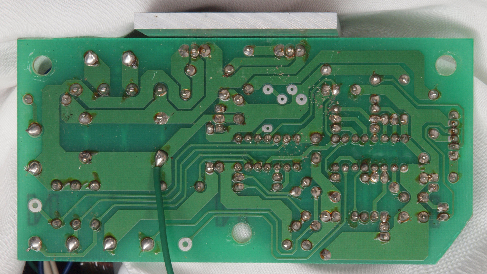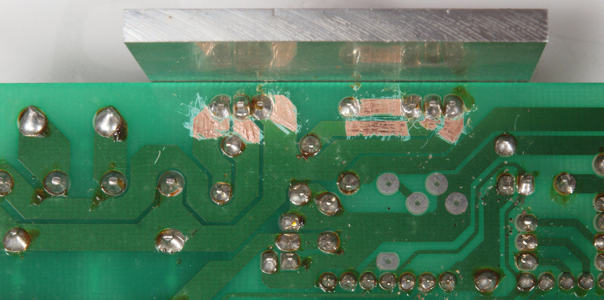 | D132. 修理中 モーター部コントロール基板裏。 定電圧ICの足銅箔広げる。 | ||||||||||||||||||||||||||||||||||||||