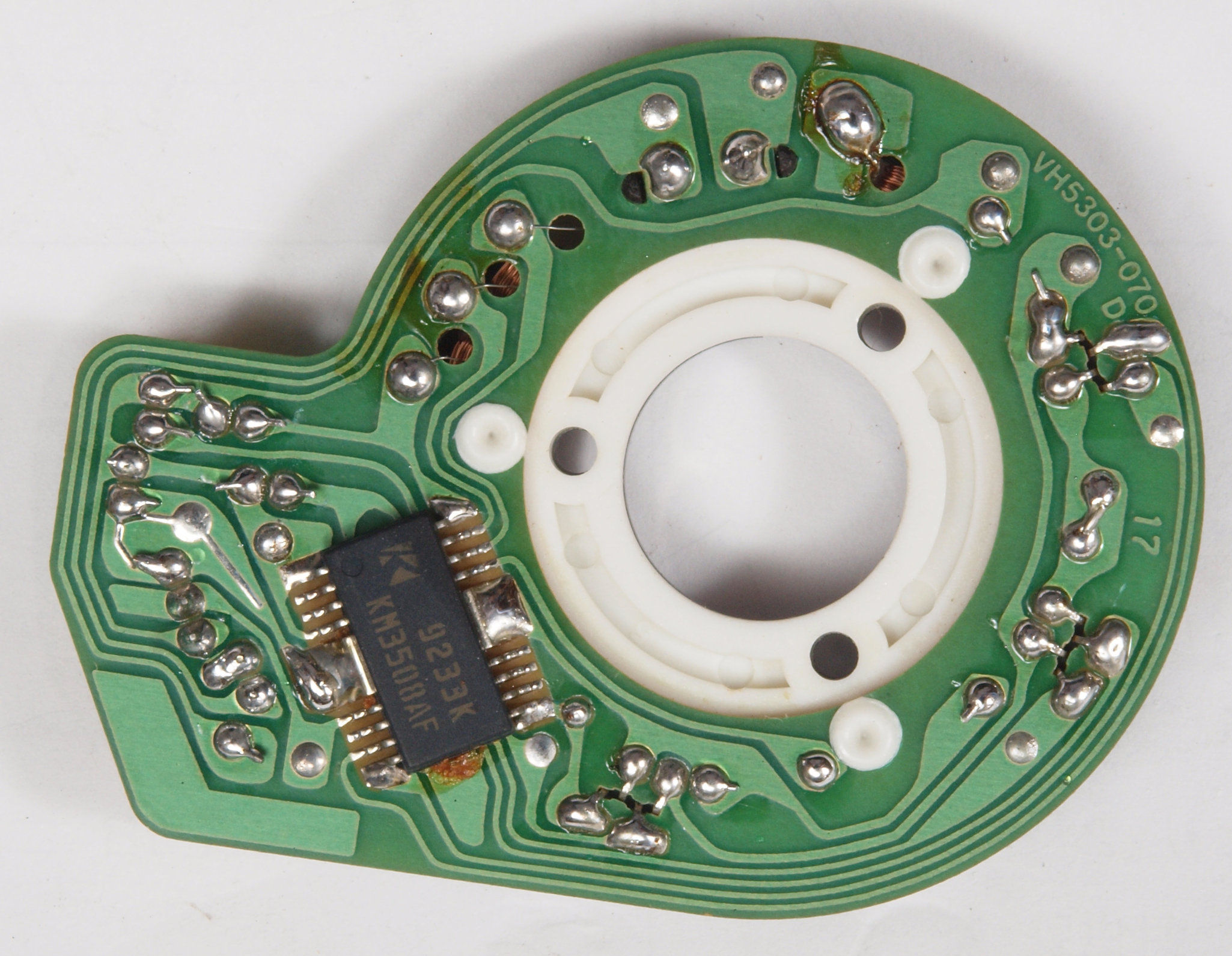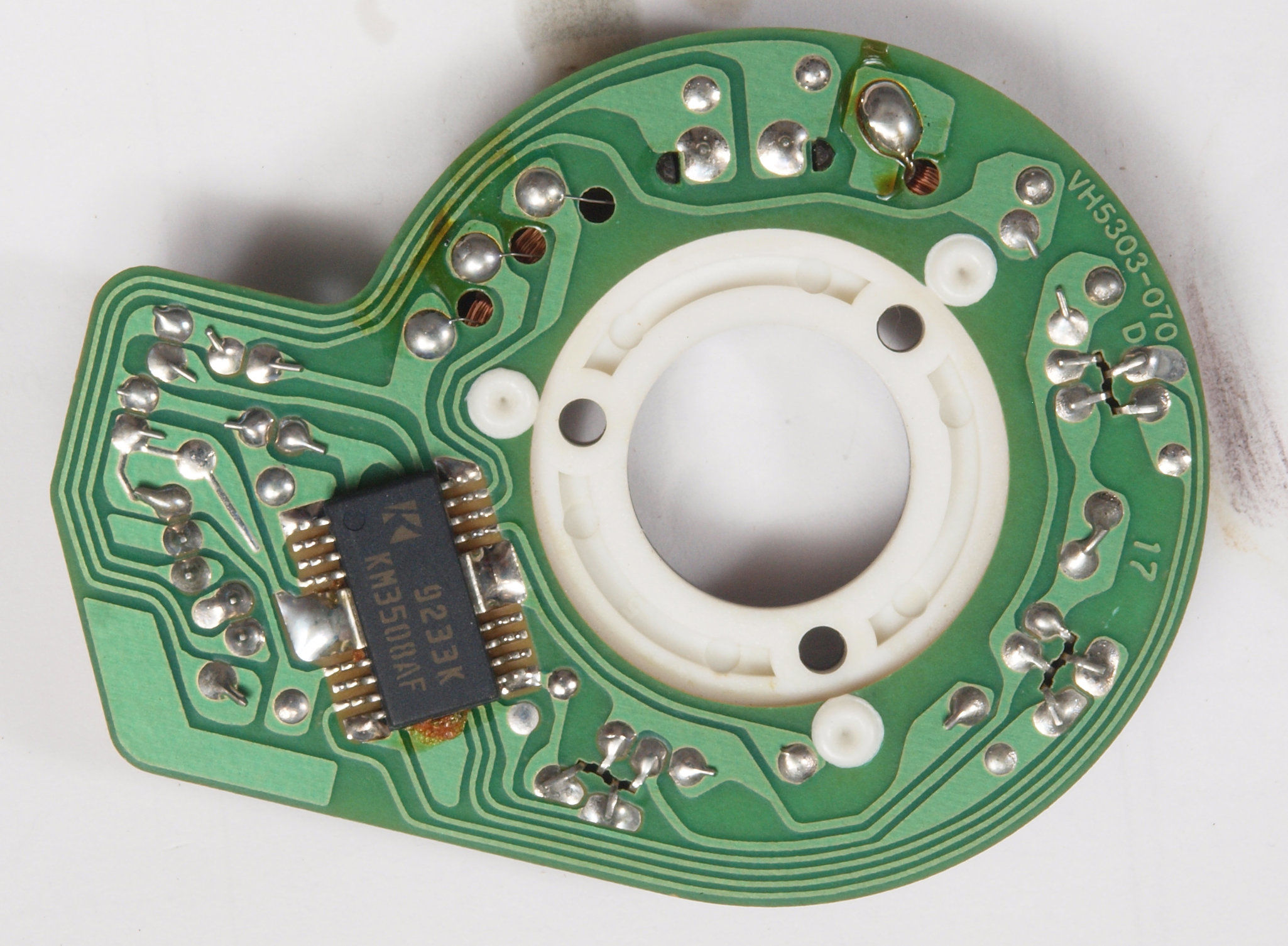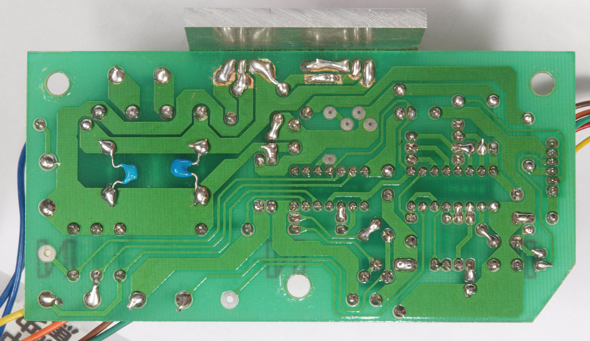 | D15. 完成モーター部コントロール基板裏。余分なフラックスを落として、コート液を塗る。 | ||||||||||||||||||||||||||||||||||||||