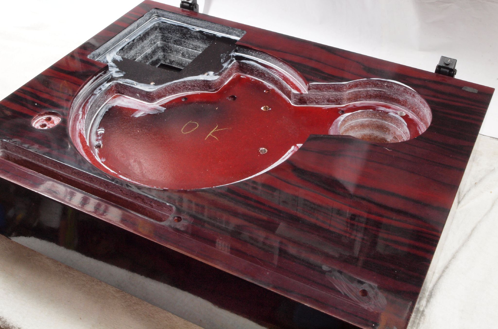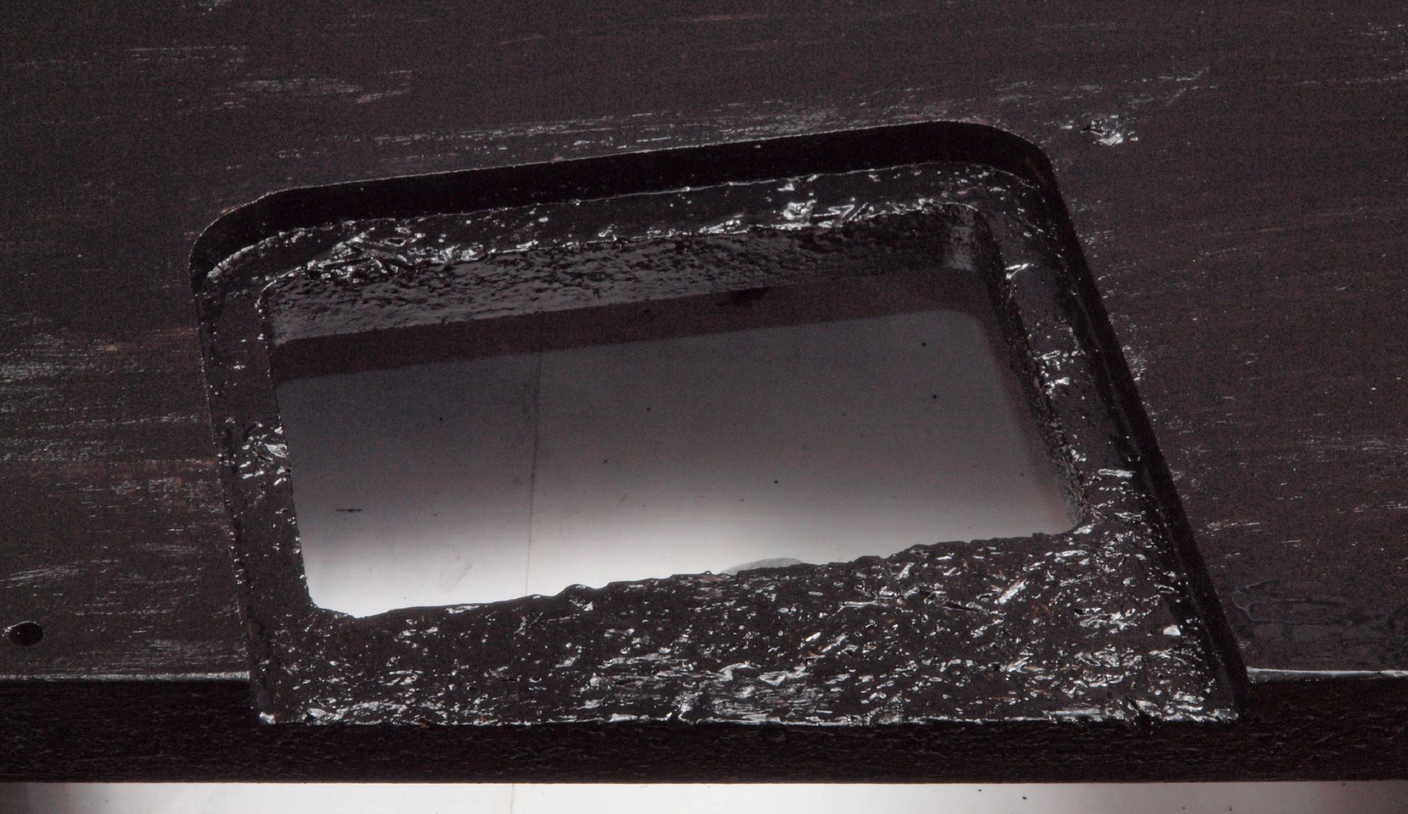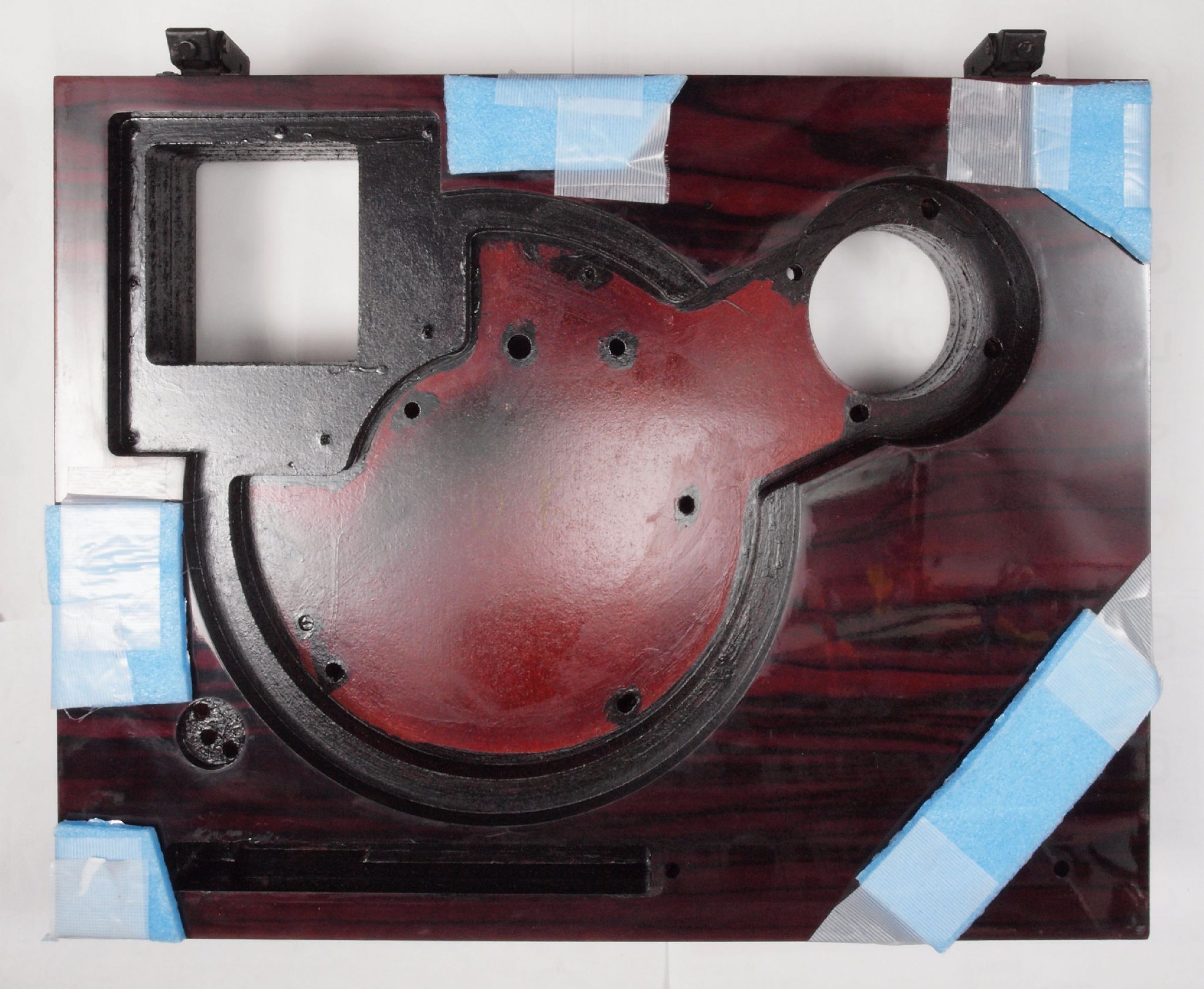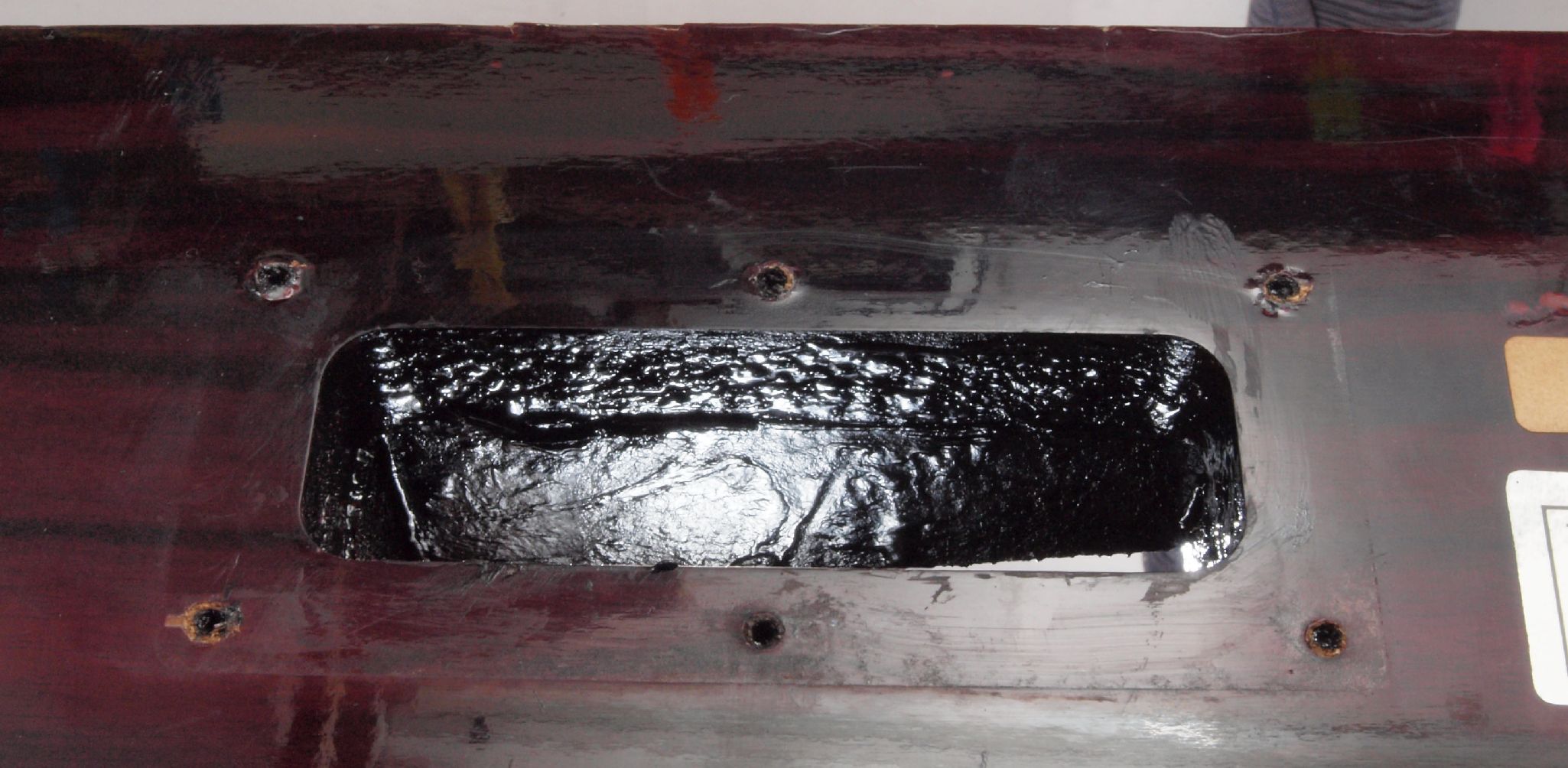 WA3. 修理後 下蓋のアーム取り付穴。 乾燥後さらにペンキを塗る。