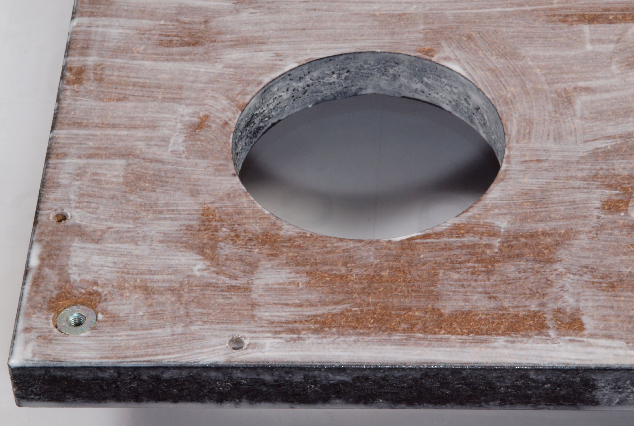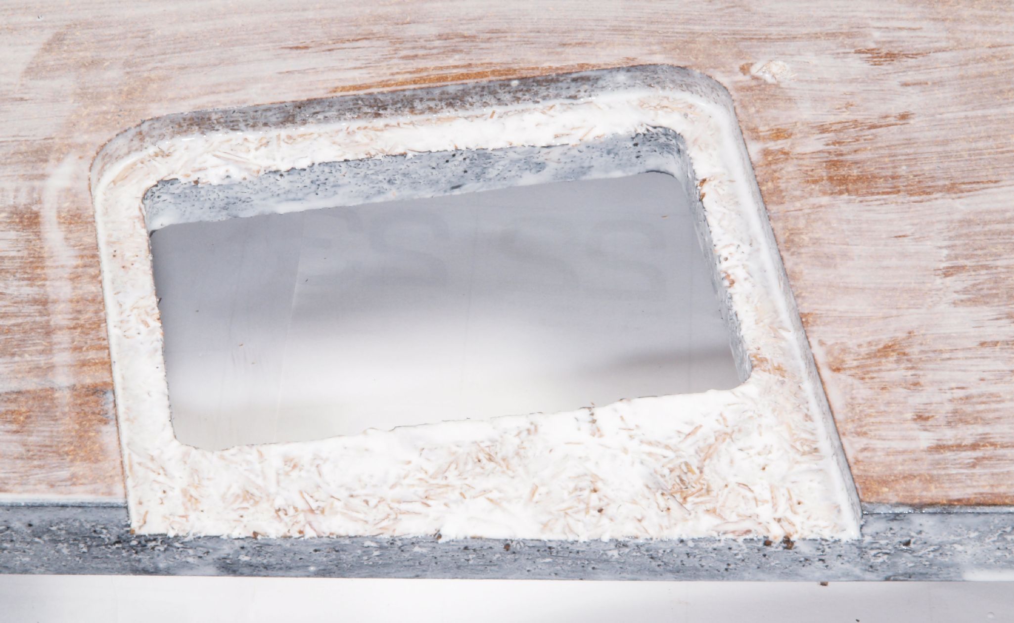 W22. 修理中 操作部取付穴。 圧縮材にボンドを染みこませる。