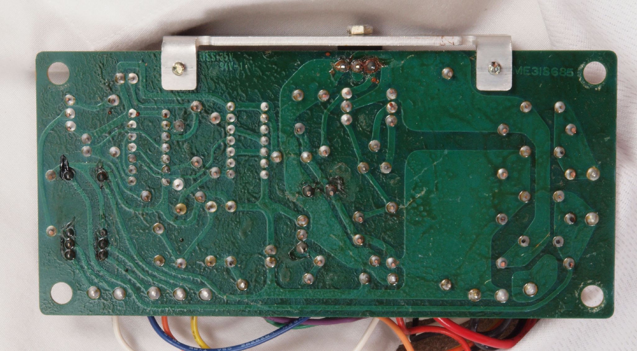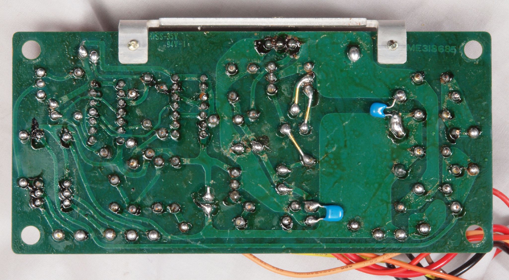 C14. 修理(半田補正)後 制御基板裏。 半田を全部やり直す。 セラミックコンデンサー1個追加。