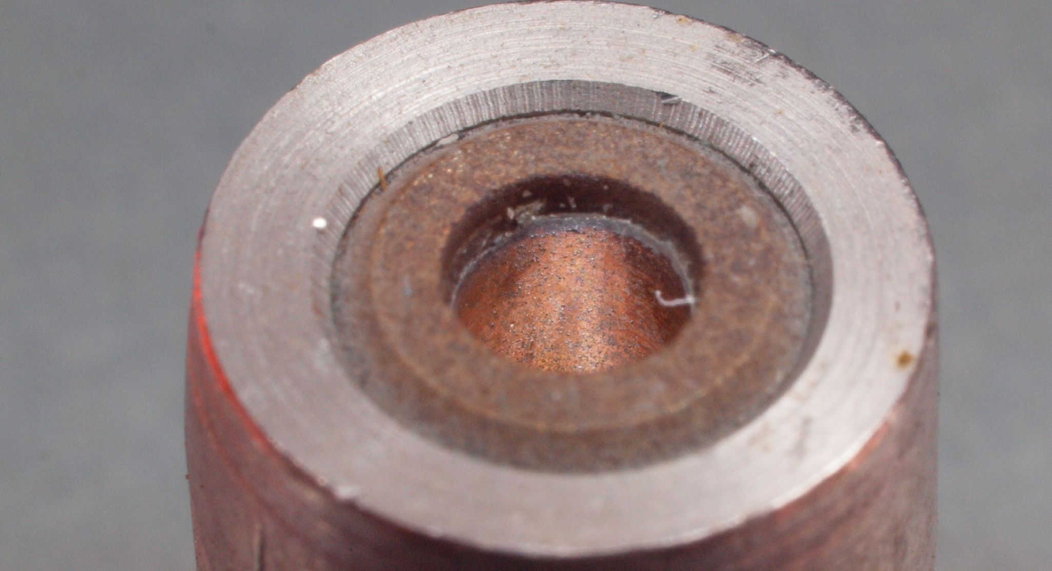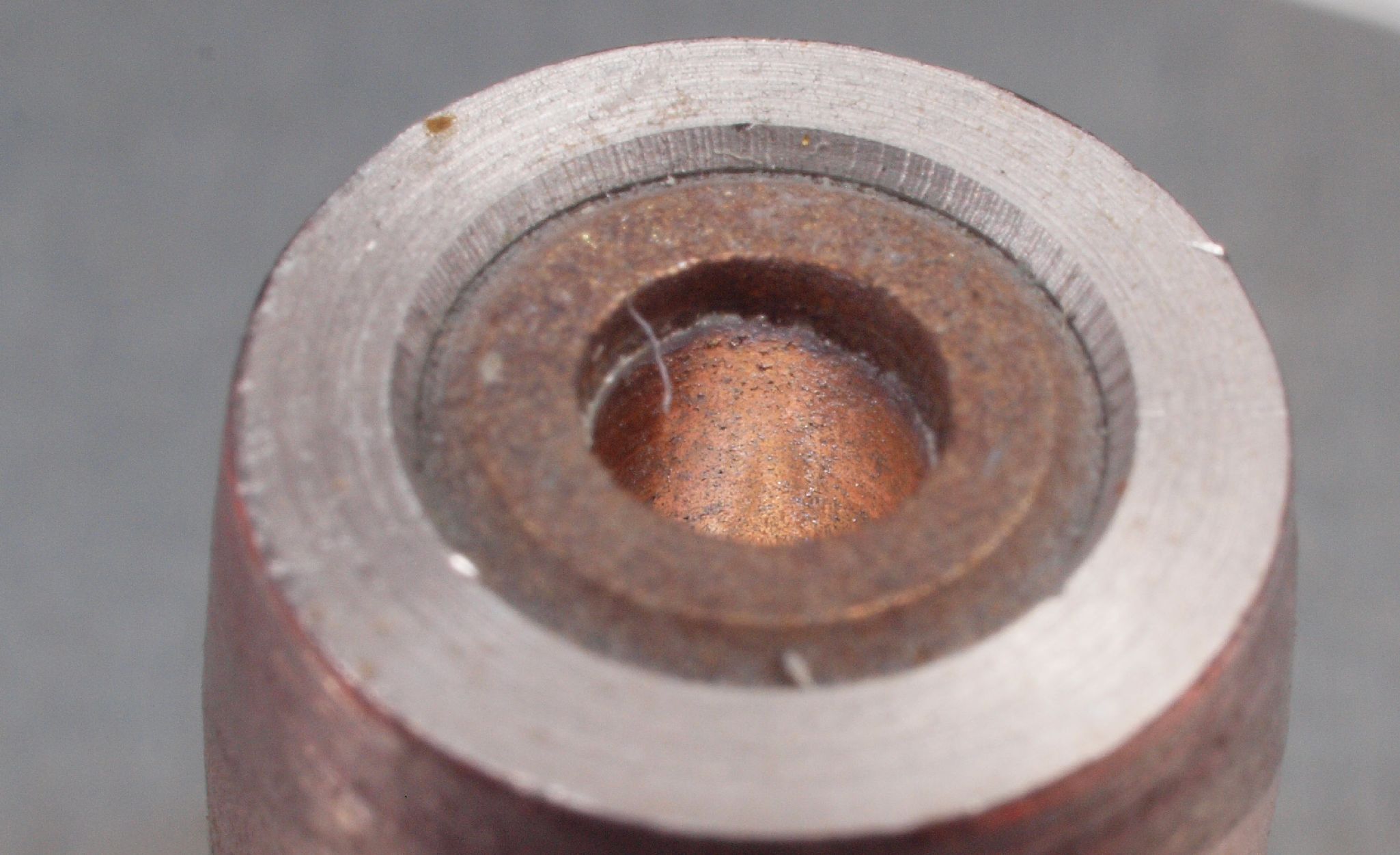 C63. 修理中 モーター回転子軸、拡大。 縦横比変更してあります。キズが目立ちます。