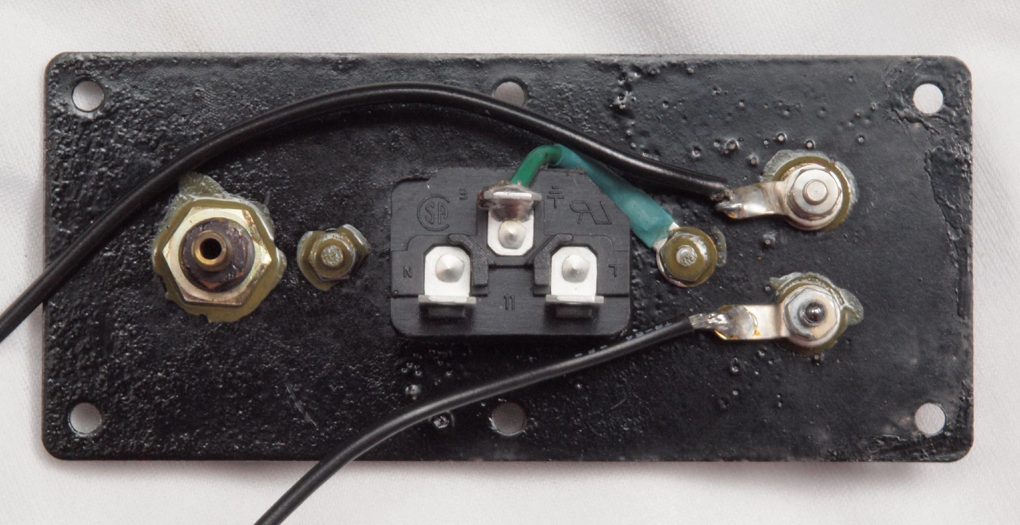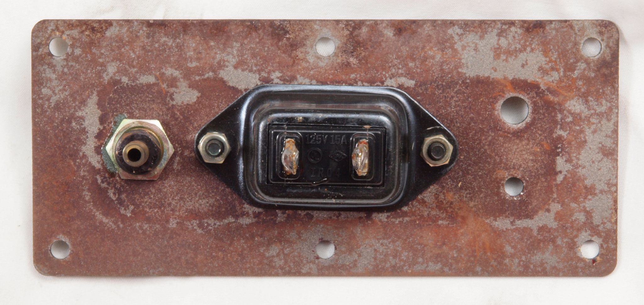 CC2. 修理中 電源ソケット裏側、取り付け板が錆びている。