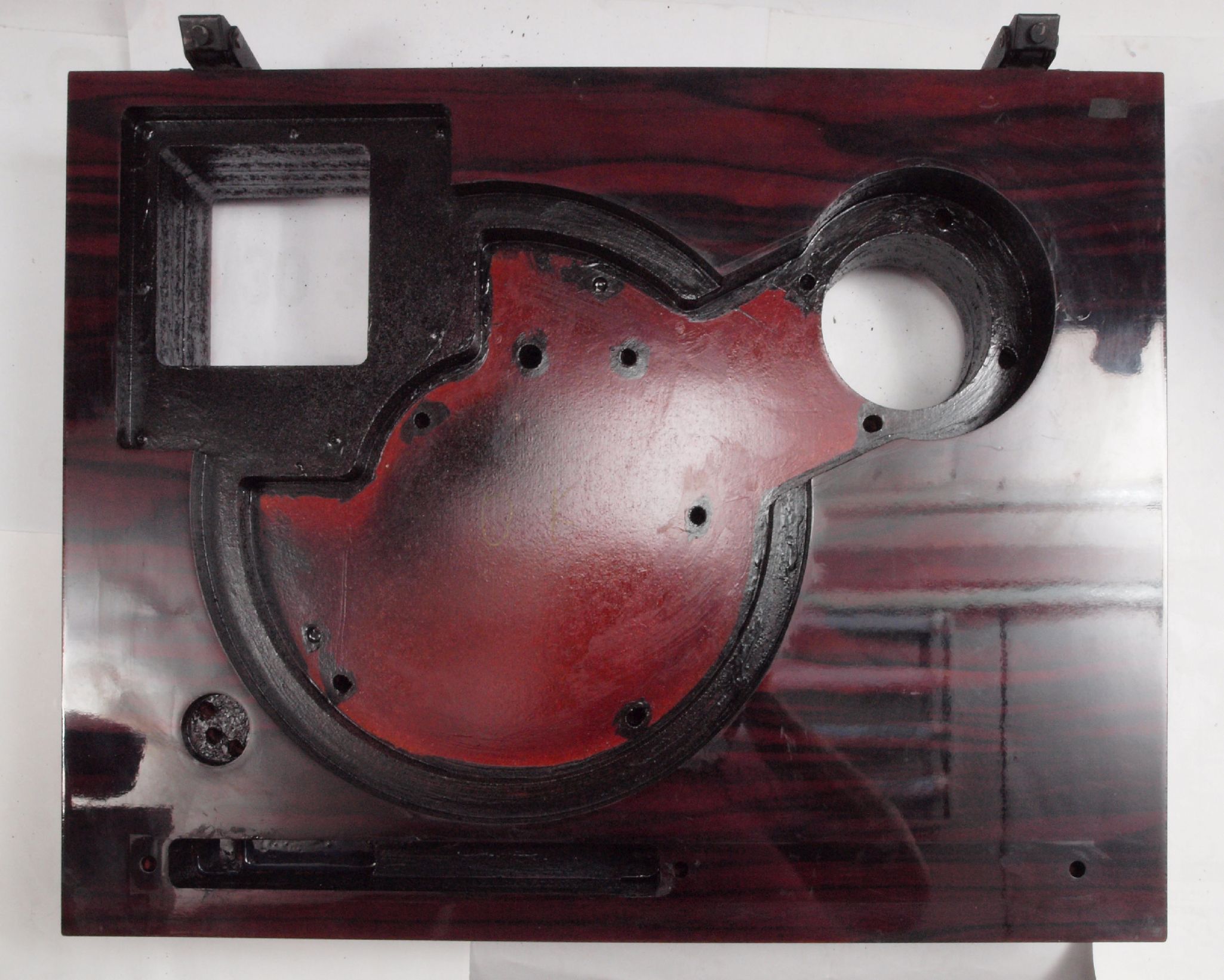 WA6. 修理後 下蓋のアーム取り付穴反対側。 乾燥後さらにペンキを塗る。