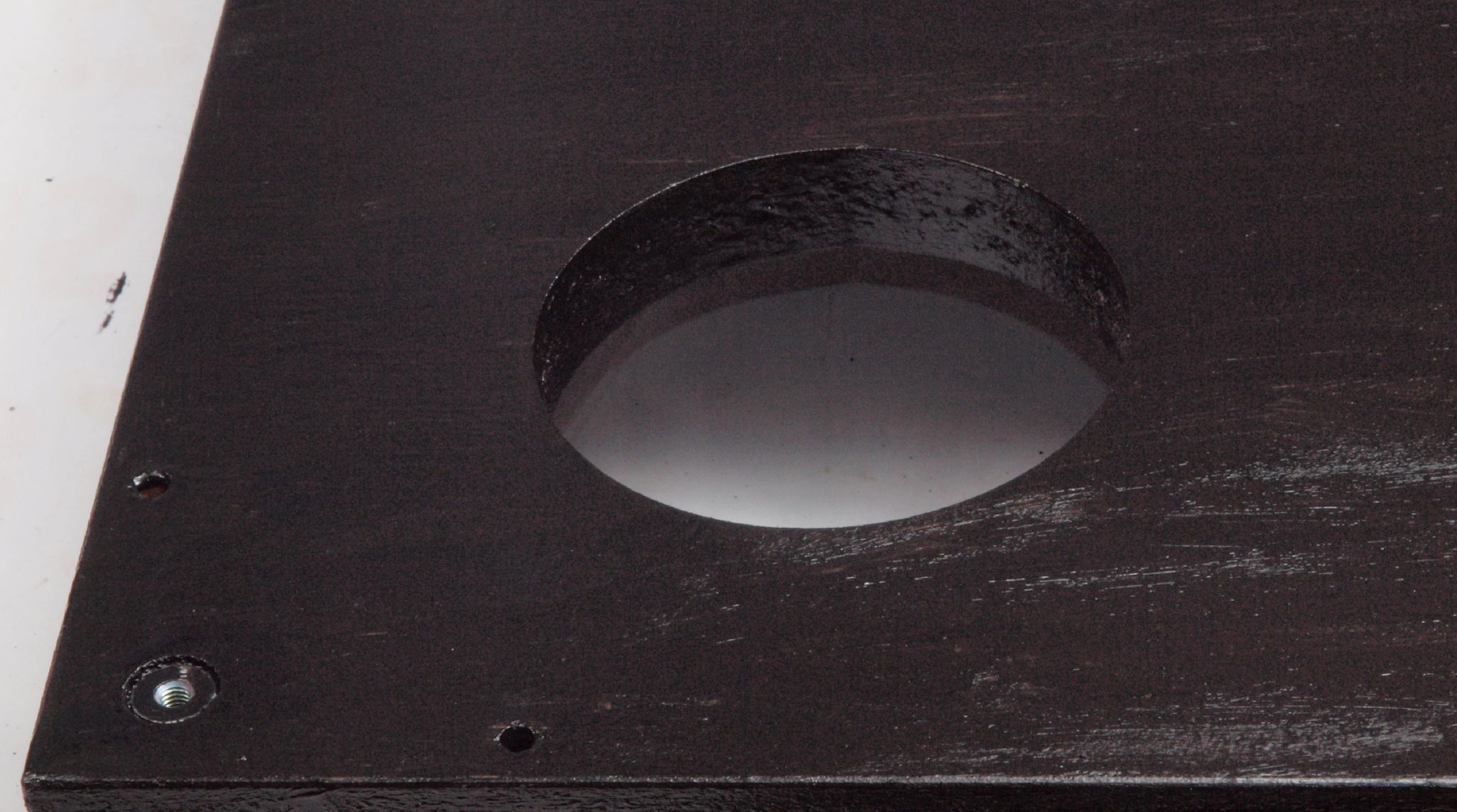 W7A. 修理後 下蓋のトランスカバー取り付穴、反対側。 乾燥後さらにペンキを塗る。