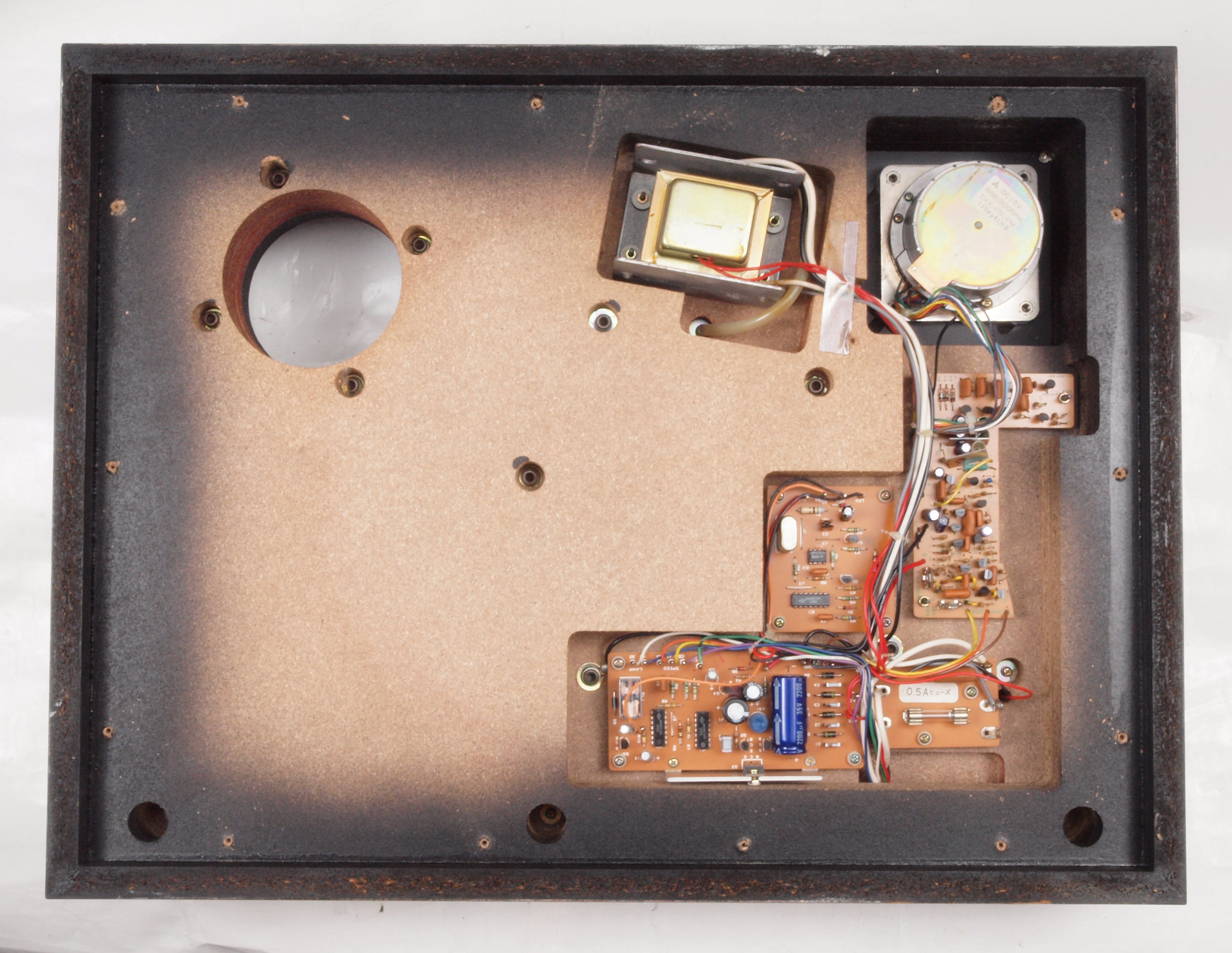 W1. 修理前  モーター、基板、アーム架台を取り本体上から。