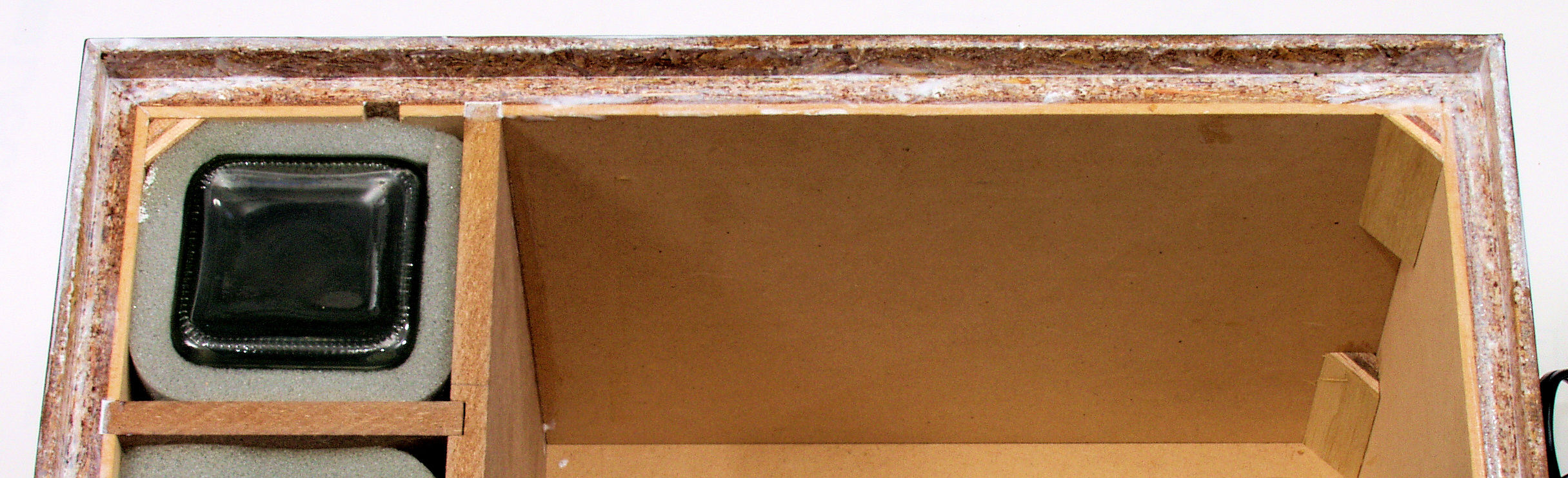 C97. 修理中 PR−1110下蓋、圧縮板にボンドを塗って固めている