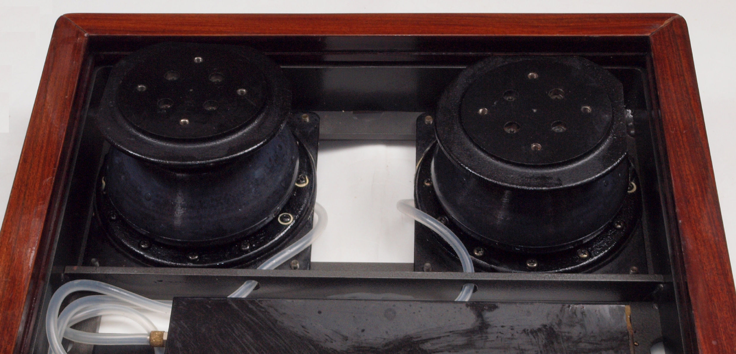 | C6. オーディオベースBA−600 修理状況。 画像をクリックすると、大きく(横幅2050ドット)表示されます。 C61. 修理後 左ゴム・チャンバー、シリコンを吹き付け、劣化を防ぐ。 |
