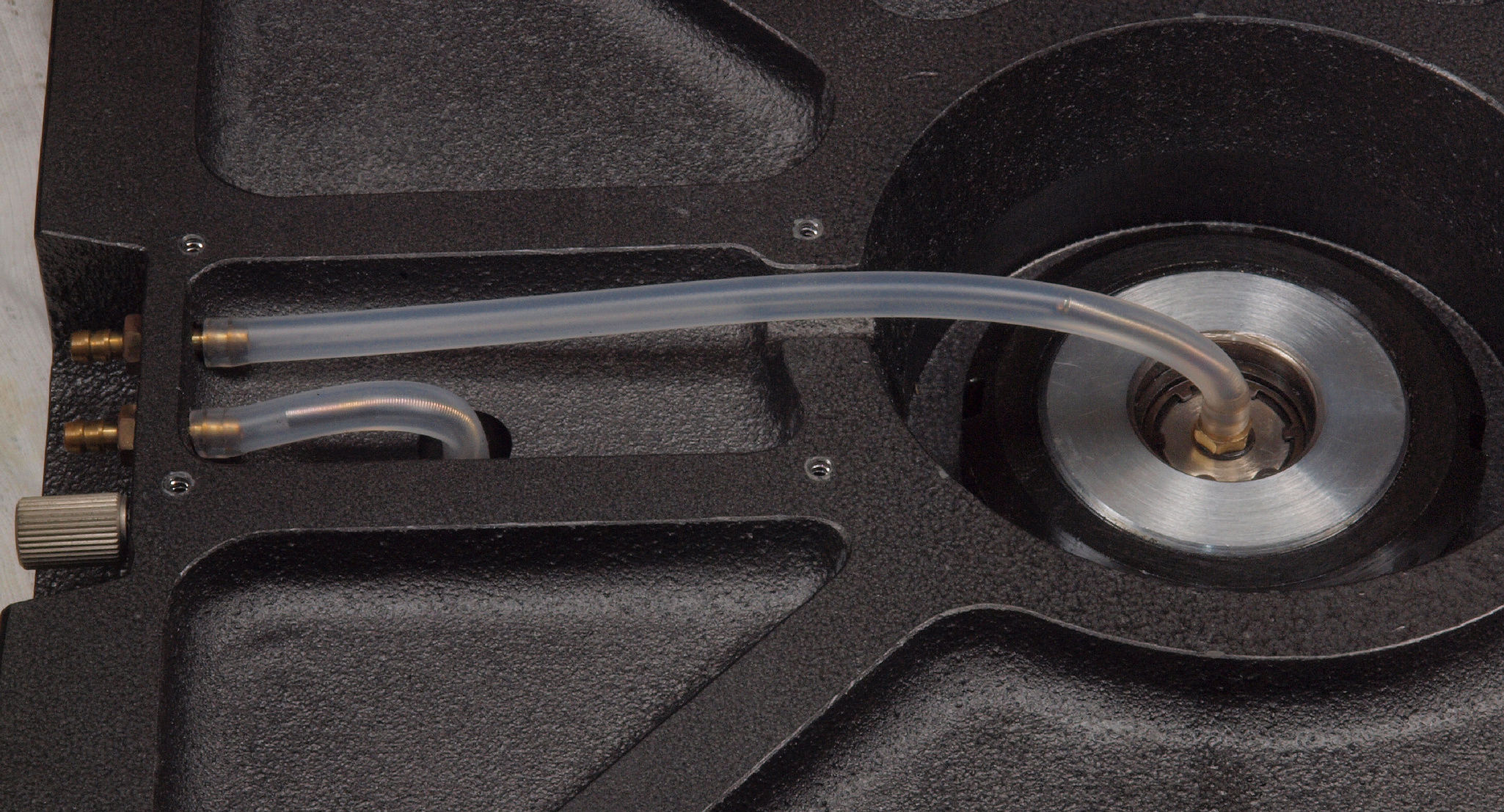 | A6. オーディオベースBA−600 修理前の点検状況。 画像をクリックすると、大きく(横幅2050ドット)表示されます。 A61. BA−600点検中 架台を外し、上から見る。 チャンバーゴムにヒビは見られない。 架台はユーザー宅へ保管。 |