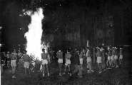 恒例の寮長の池での清身  玄関前で一休み中の御輿