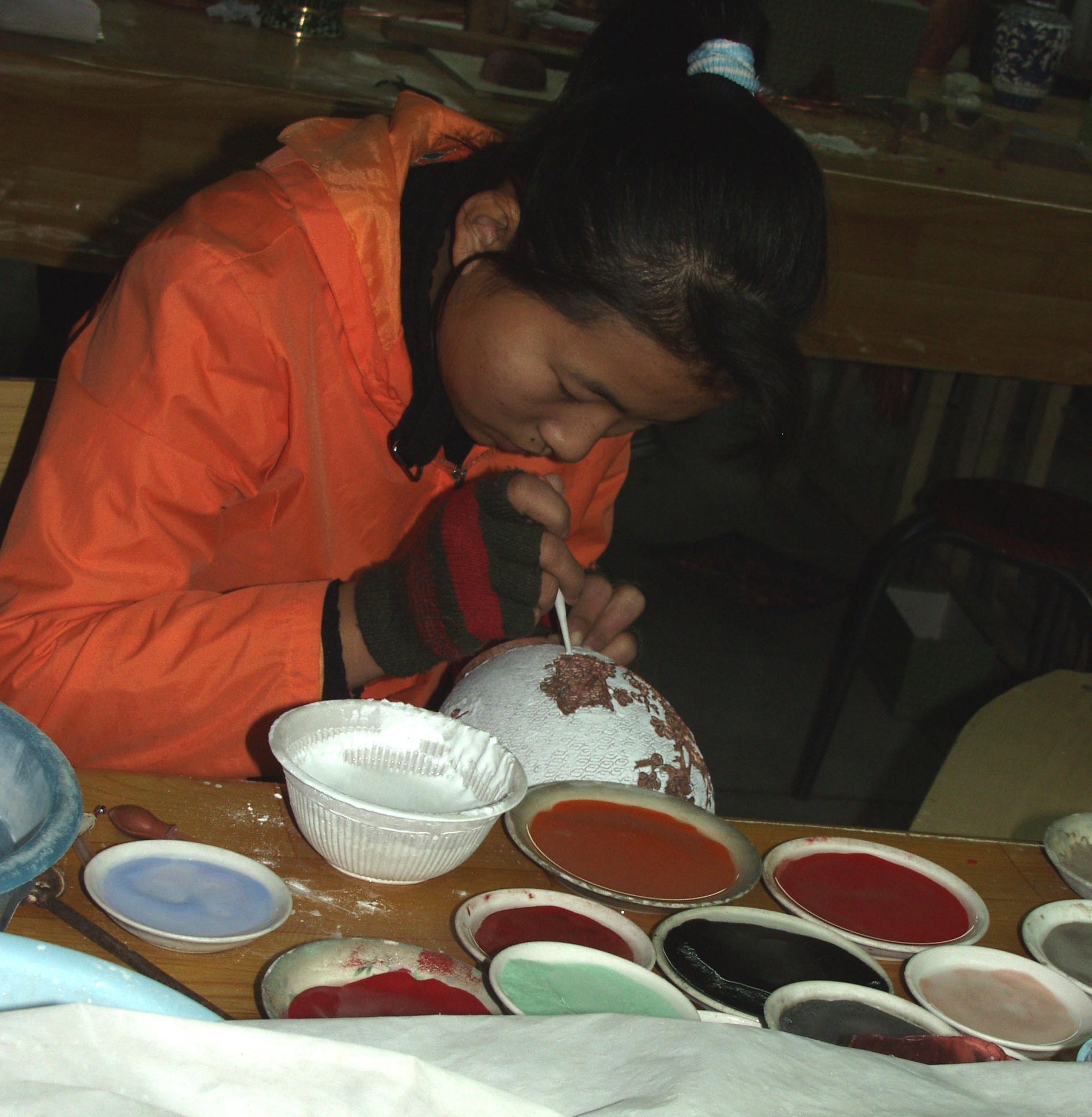 6.釉薬 釉薬を乳鉢ですって粉末とし、水と布海苔を加えて筆やホセなどで施釉。