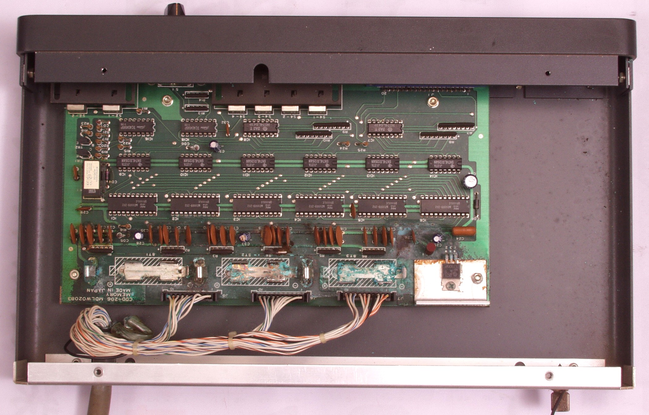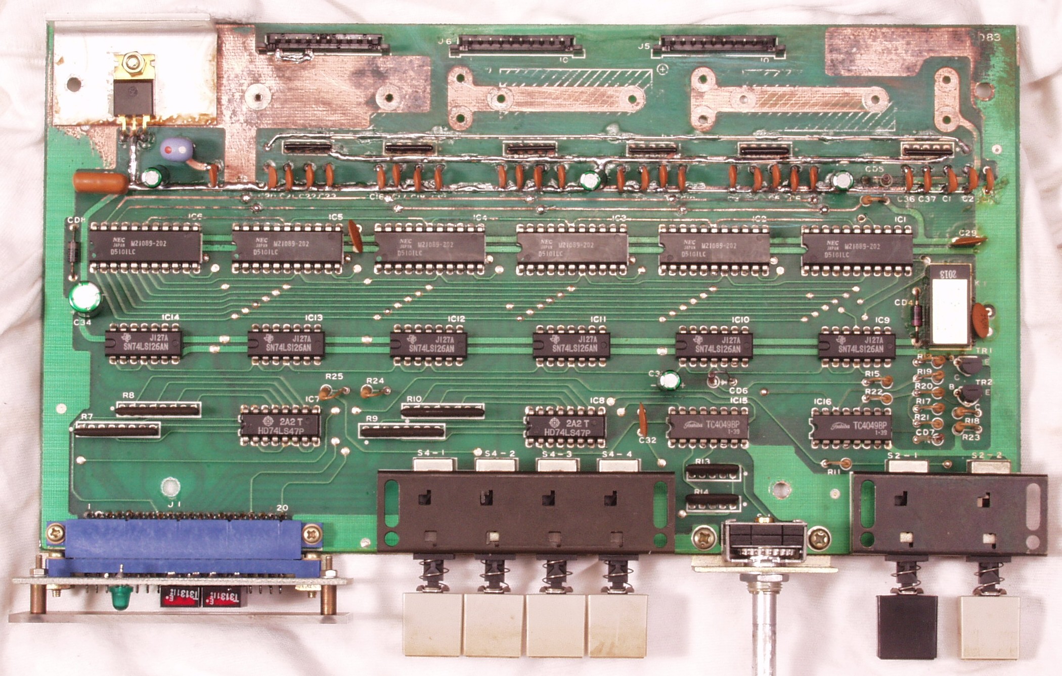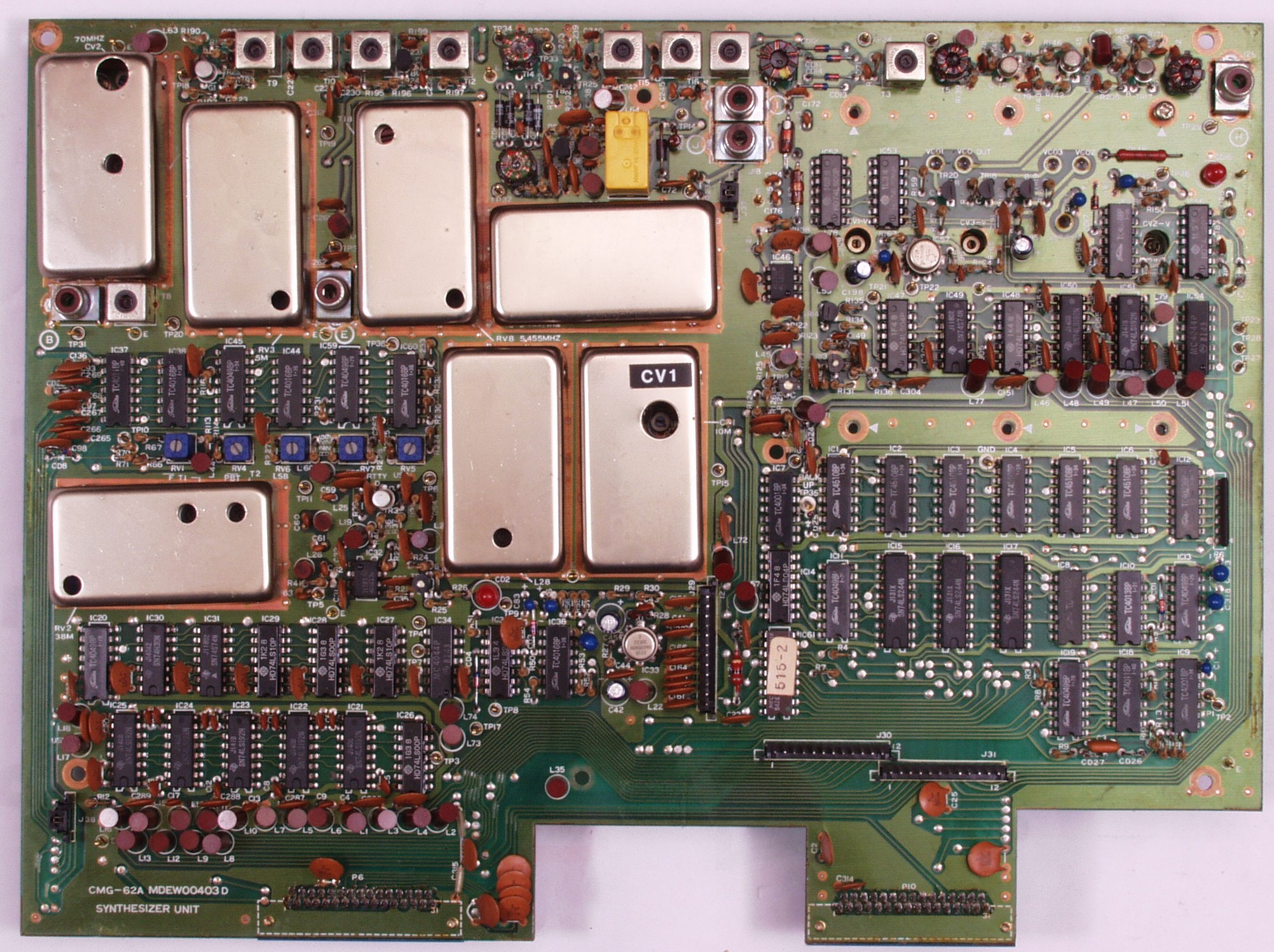 | C−6B. 修理中 シンセサイザー基板、シールドを外した所 |