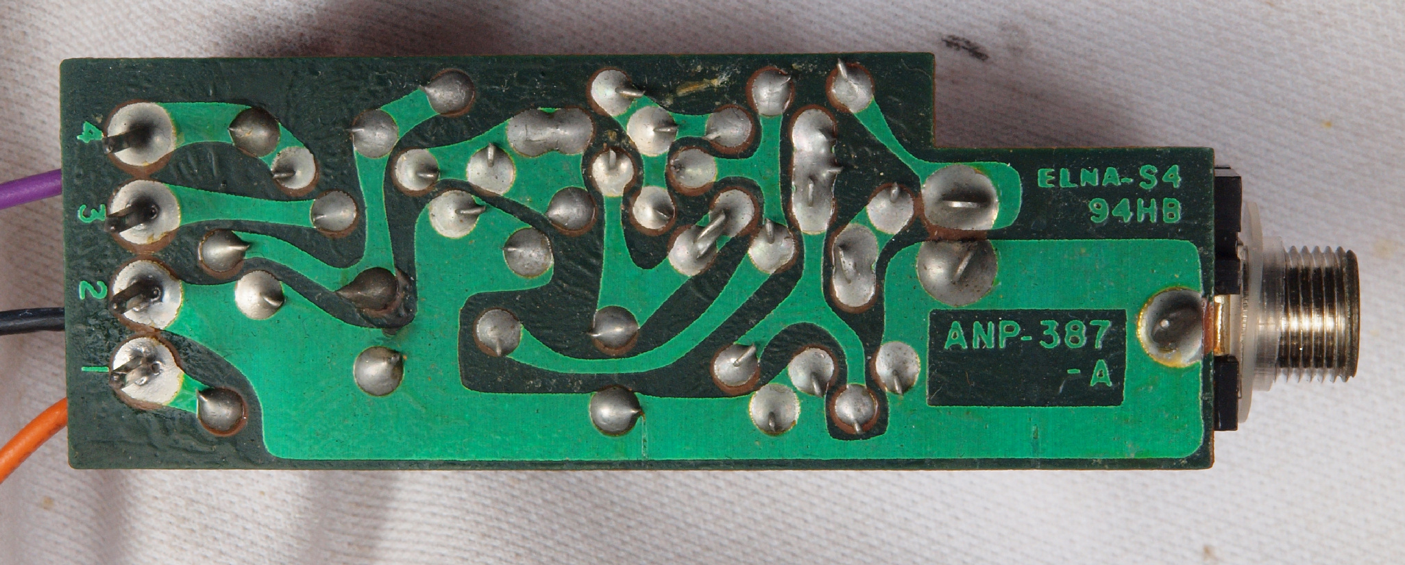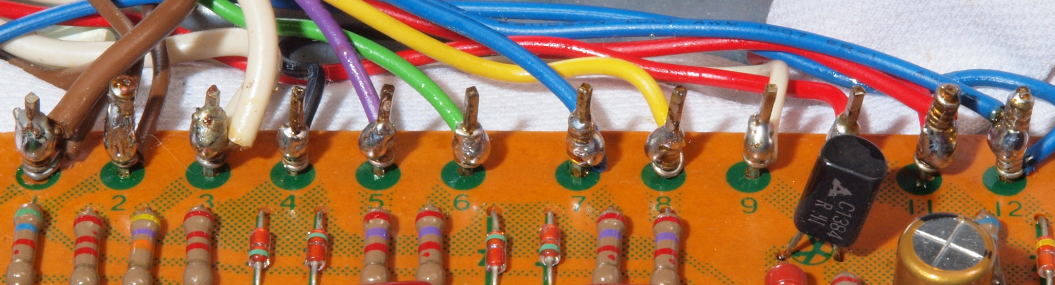 | CB7. 修理後 マイクAMP基板、ラッピング。ラッピング線に半田を浸み込ませる。 | ||||||||||||||||||||||||||||||||||||||||||||||||||||||||||||||||||||||||||||||||||||||||||||||