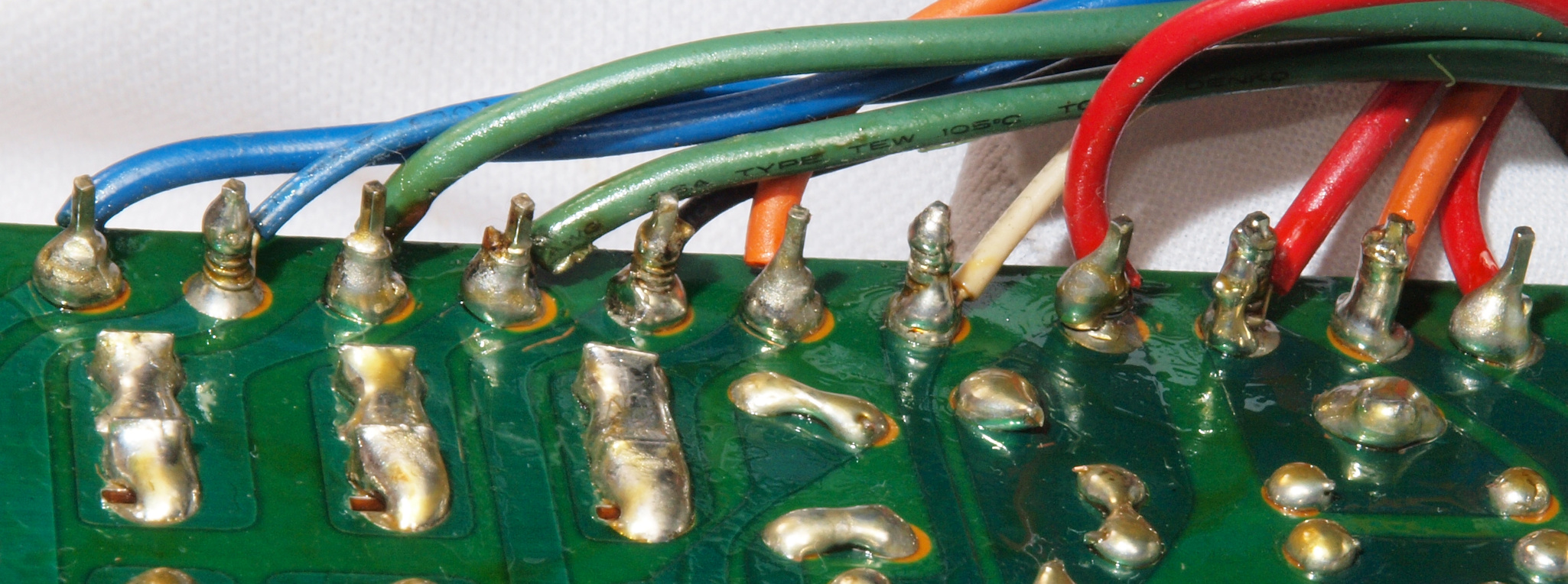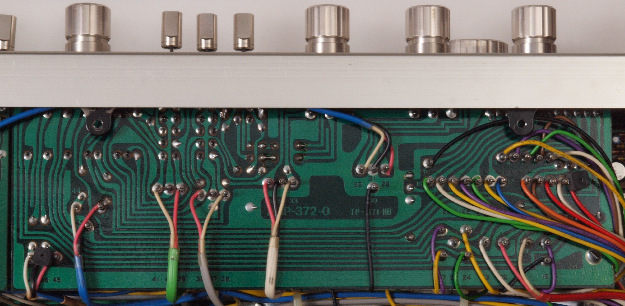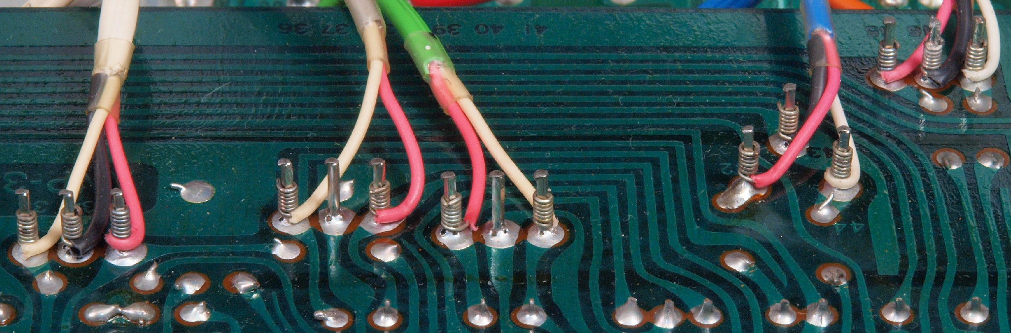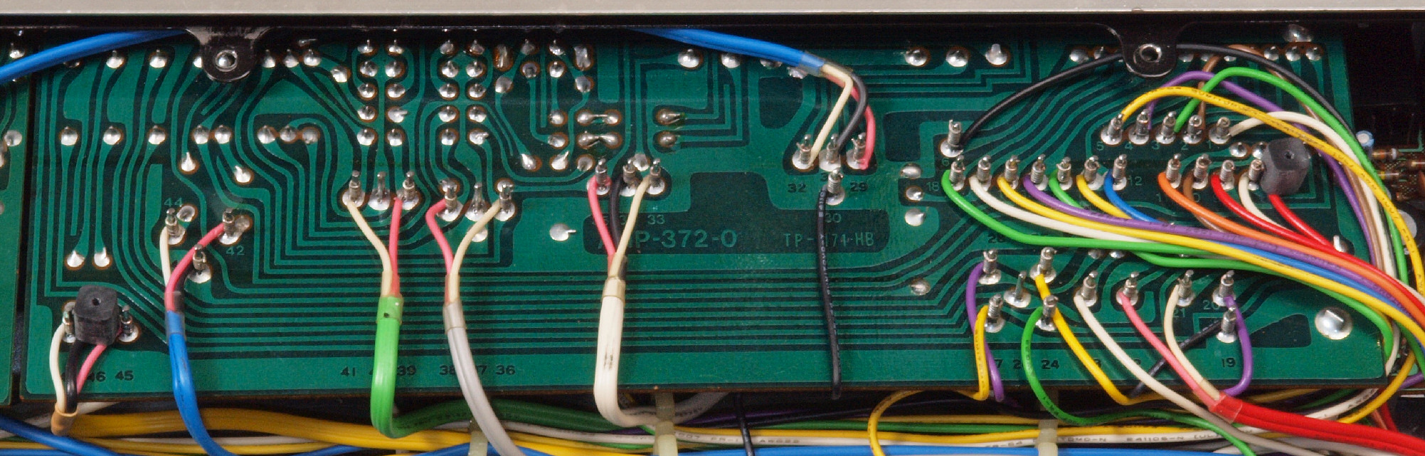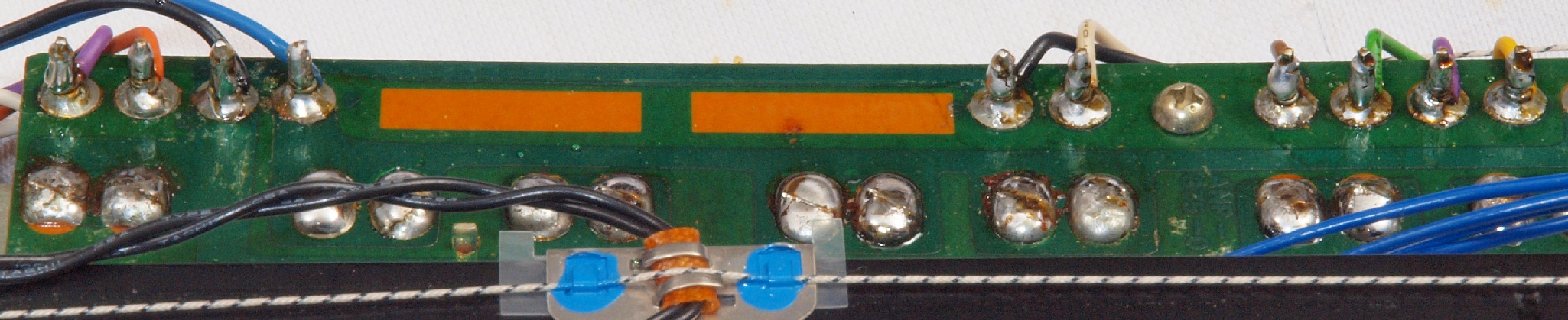 | C37. 修理前 SW+VR基板裏、ラッピング。ラッピング線に半田を浸み込ませる。 | ||||||||||||||||||||||||||||||||||||||||||||||||||||||||||||||||||||||||||||||||||||||||||||||