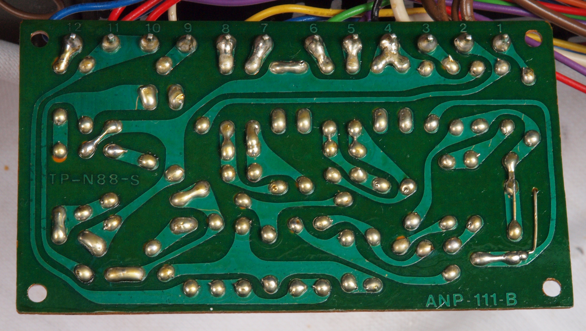 | CD5. 修理前 パネル イルミネーションランプ基板裏ラッピング。ラッピング線に半田を浸み込ませる。 | ||||||||||||||||||||||||||||||||||||||||||||||||||||||||||||||||||||||||||||||||||||||||||||||
