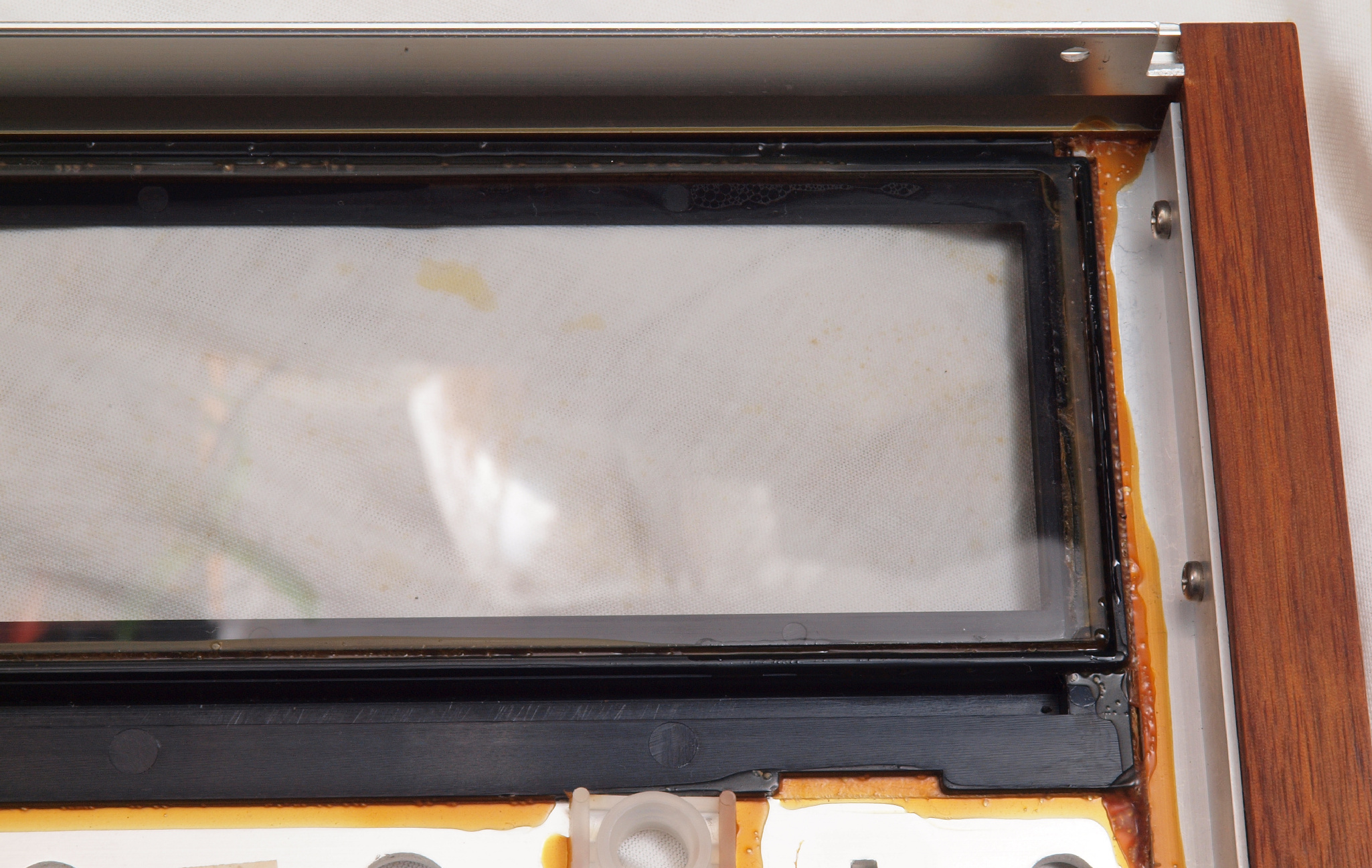 | CI3. 左パネル裏。 経年劣化で接着が剥がれているので、ガラスを接着する。 | ||||||||||||||||||||||||||||||||||||||||||||||||||||||||||||||||||||||||||||||||||||||||||||||