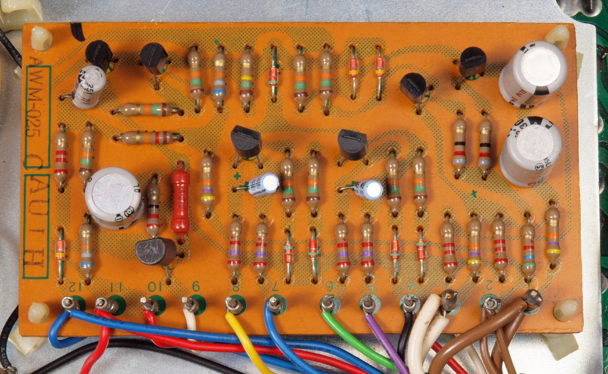 | C22. 修理後 終段TR(トランジスター)基板。電解コンデンサー8個、半固定VR4個交換。 | ||||||||||||||||||||||||||||||||||||||||||||||||||||||||||||||||||||||||||||||||||||||||||||||