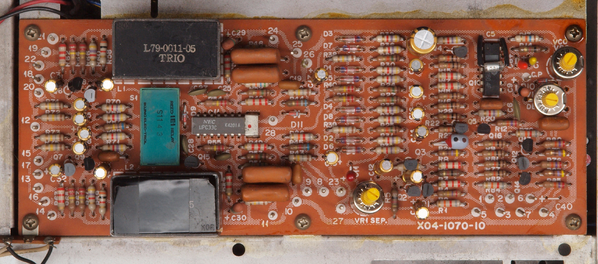 C32. 修理後 MPX基板 足黒TR(トランジスター)10個、電解コンデンサー18個、半固定VR3個交換