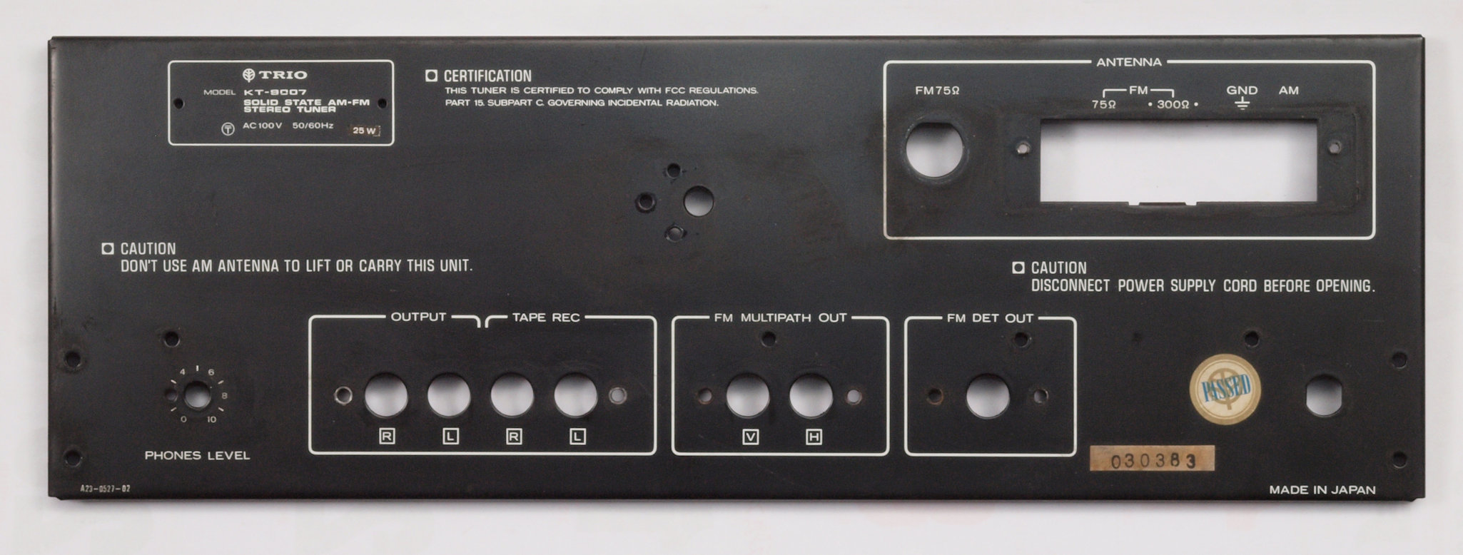 C91. 修理前 Multi pass/FM DET出力RCA端子。