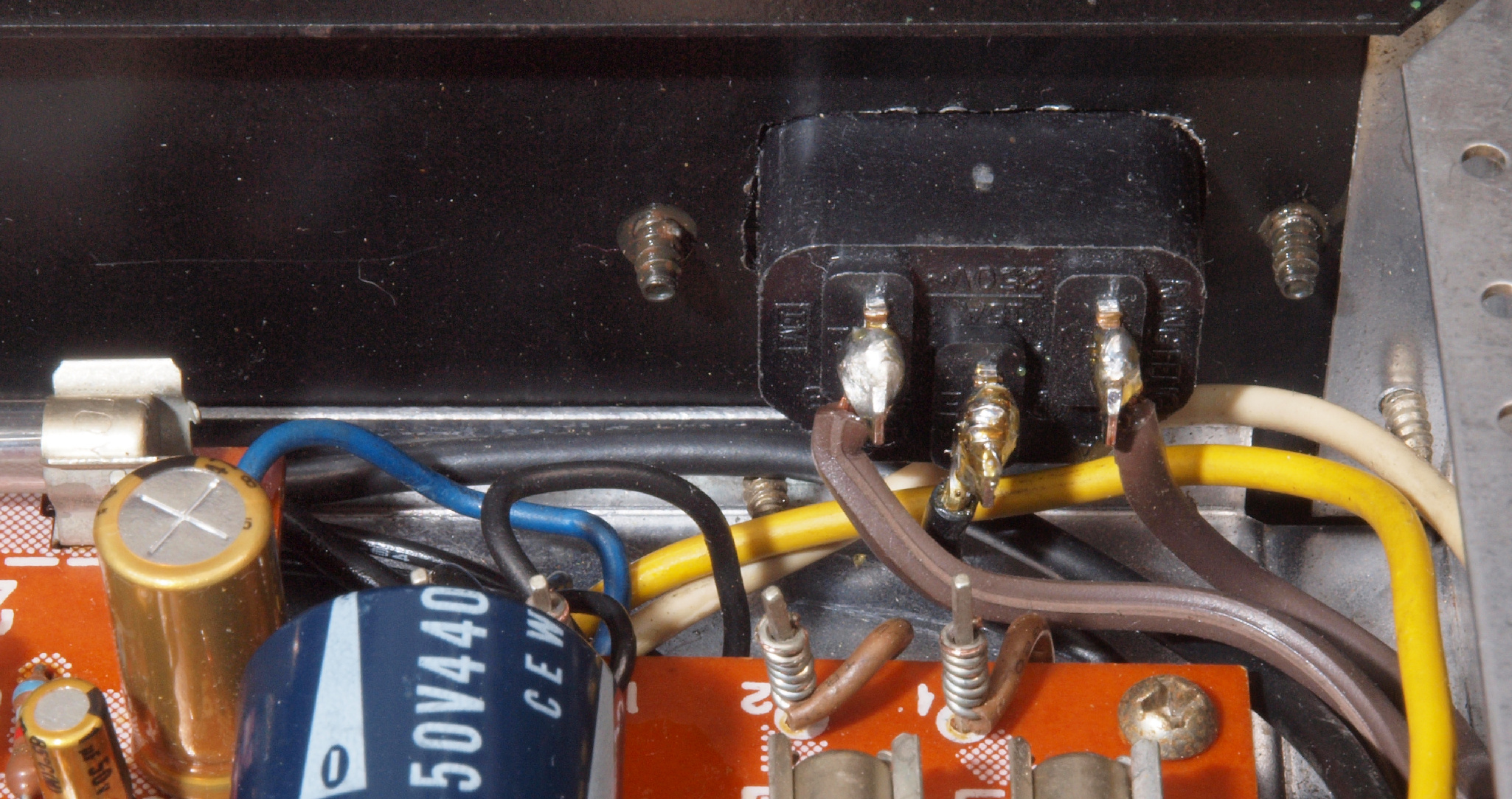 C74. 修理後 3Pインレット裏配線。 アースはしっかりと取る。