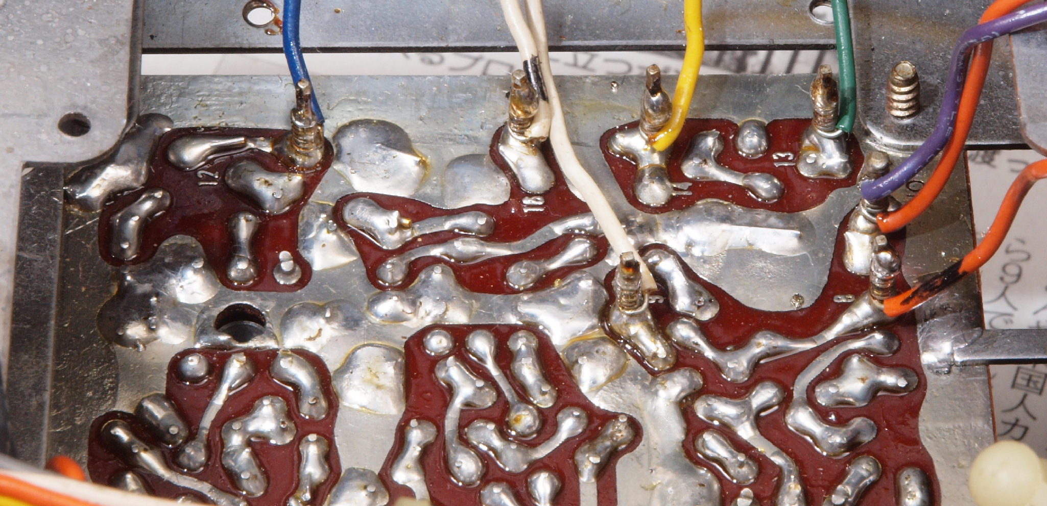 C36. 修理前 MPX基板裏ラッピング、半田を浸みこませる