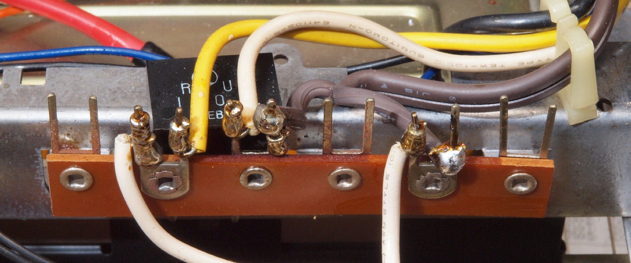 C6C. 修理前 電源配線端子ラッピング、半田を浸みこませる