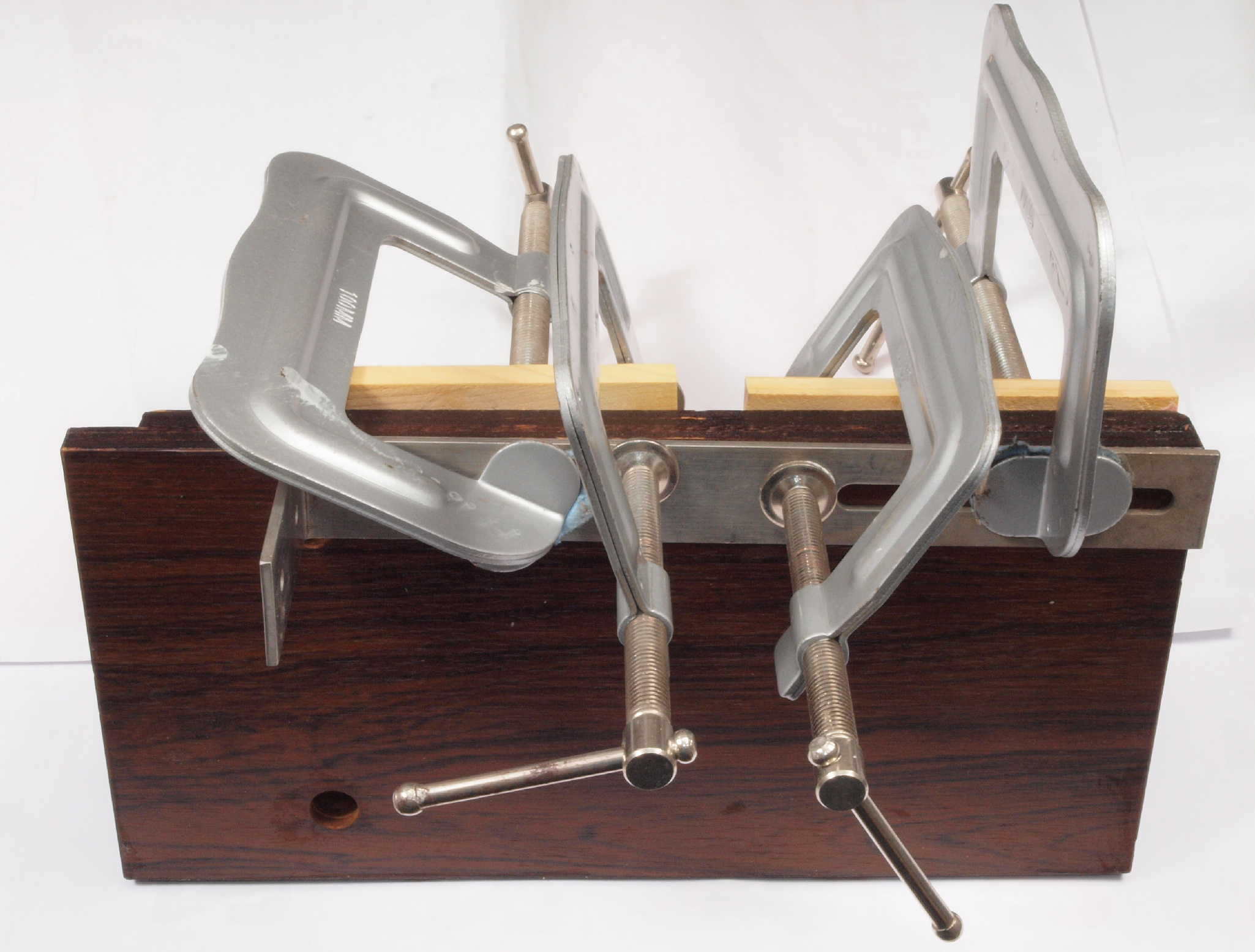 K47. 修理前 左側サイドパネルした。 ボンドを染みこませて、シャコ万力で固定する。