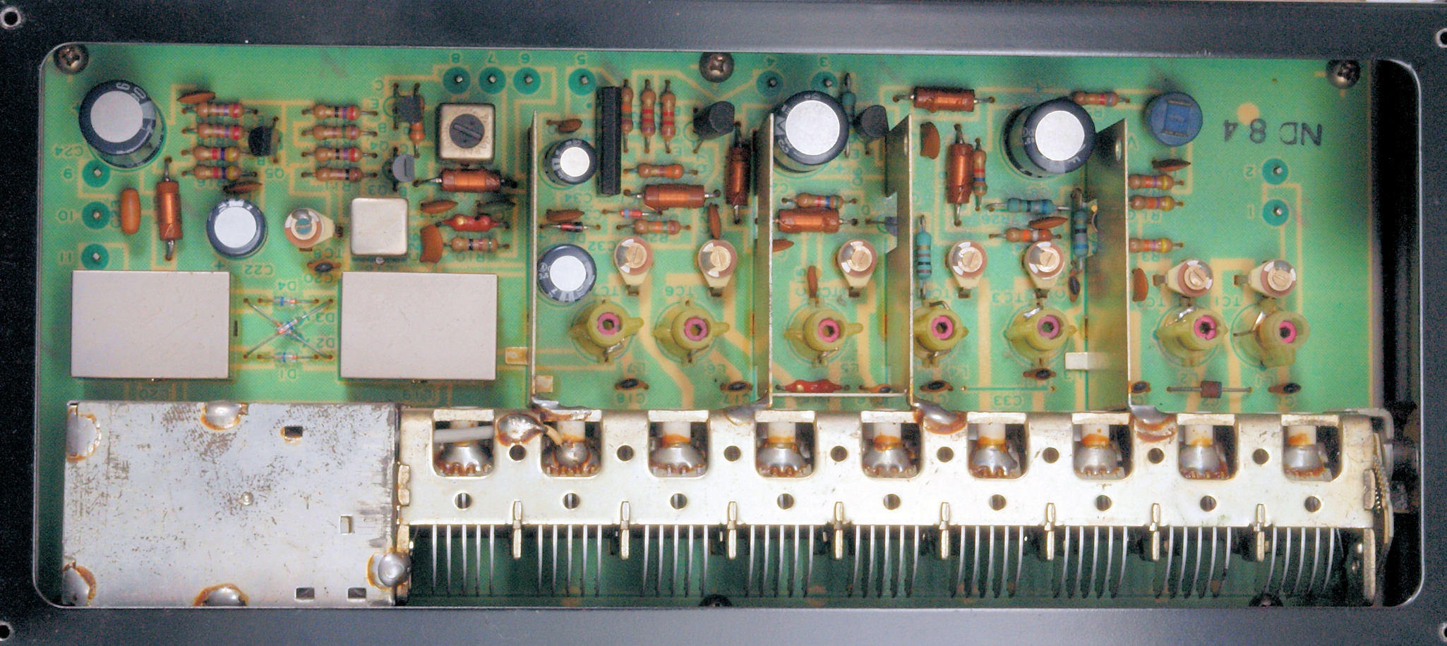 C32. 修理後 RF−MIX基板。 電解コンデンサー6個、半固定VR1個交換
