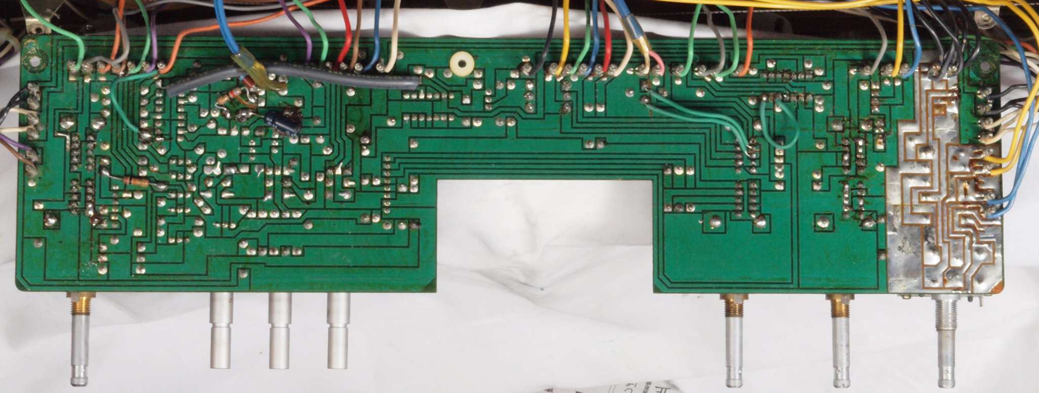 C34. 修理(半田補正)後 RF−MIX基板裏、 半田を全部やり直す。
