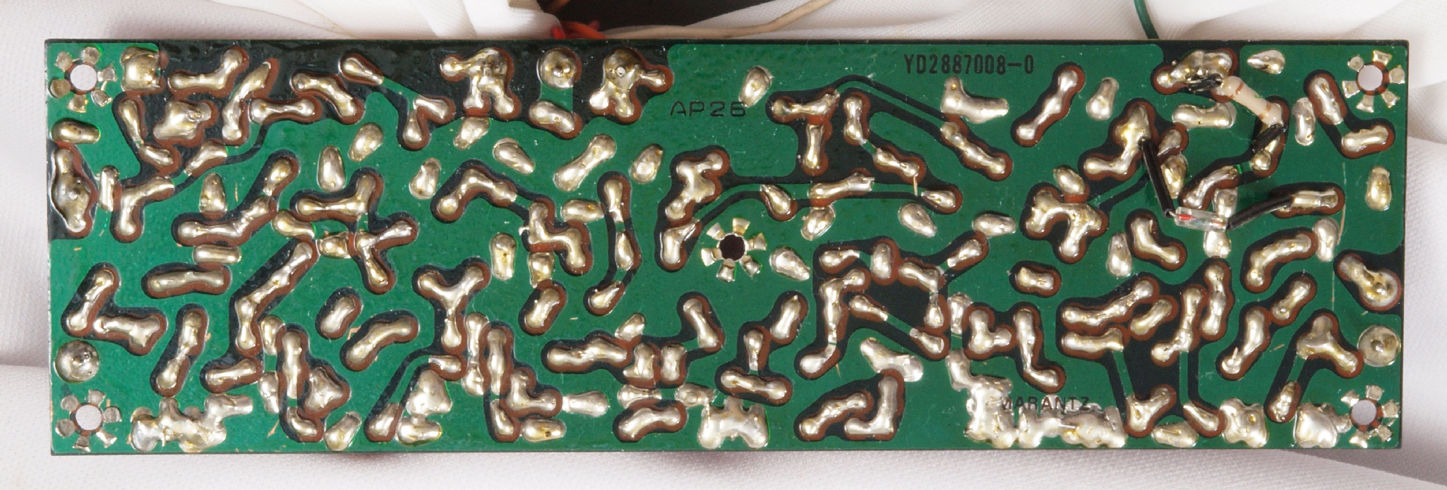 | CC4. 修理(半田補正)後 表示照明基板裏。 半田を全部やり直す。 | ||||||||||||||||||||||||||||||||||||||||||||||||||||||||||||||||||