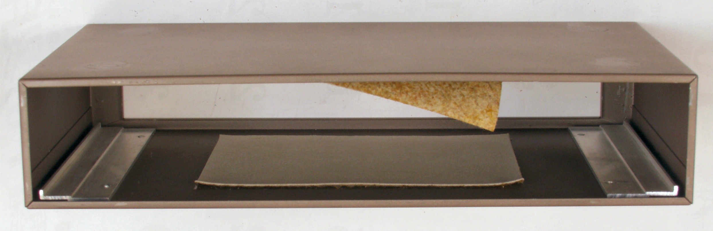 | A3. 点検中 ケース上に貼られた、フエルトを固めた様な物! 接着材が劣化して剥げ落ち、本体が引き出せない。 |