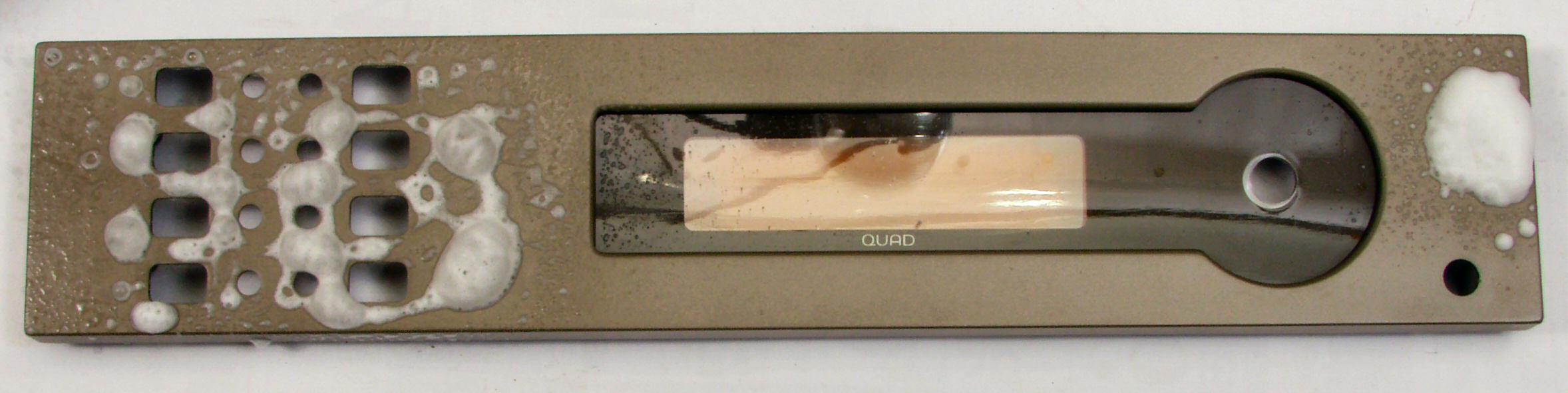 | A4. 点検中 ケース下に貼られた、フエルトを固めた様な物! 接着材が劣化して剥げ落ち、本体が引き出せない。 |