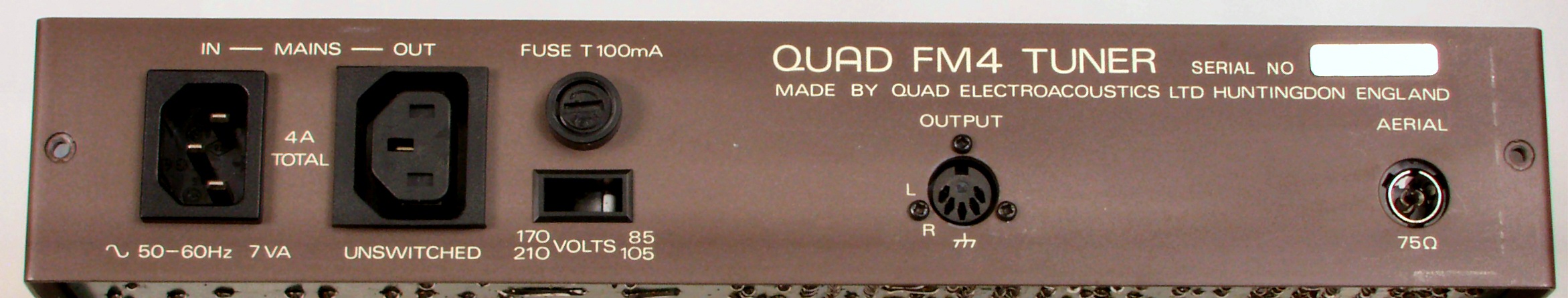 F. 修理費 45,000円 オーバーホール修理。 S. QUAD FM4 の仕様(マニアル・カタログより) |
