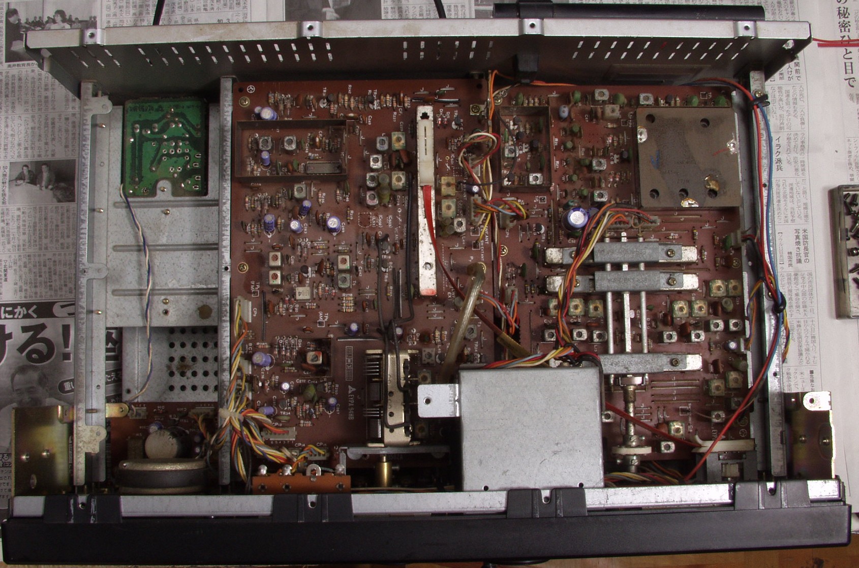 | C33. 修理後 RF基板 電解コンデンサー3個、TR(トランジスタ−)2個、FET(電界トランジスタ−)交換 |
