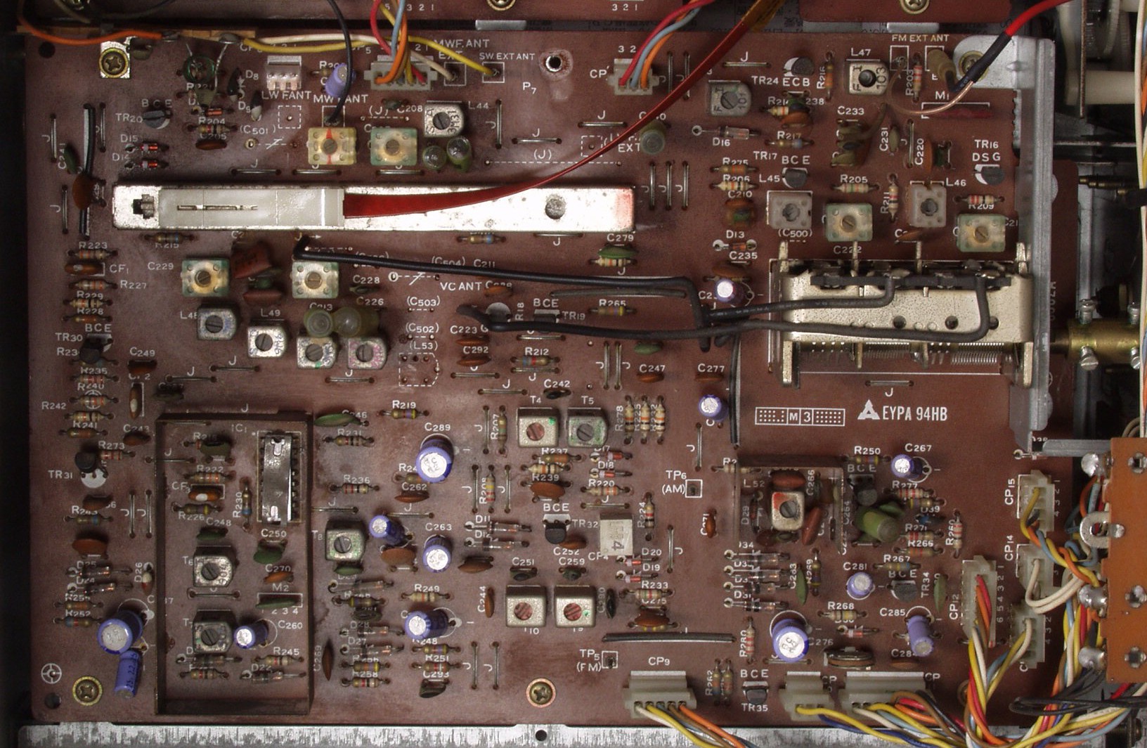 | C22. 修理後 IF基板 電解コンデンサー14個、TR(トランジスタ−)4個交換 |