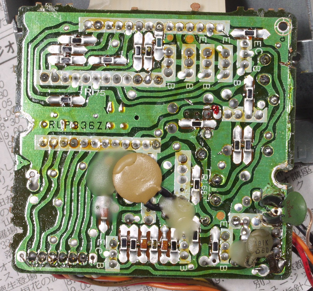 | C322. 修理中 RF基板 電解コンデンサーの液漏れによるダイオードの腐食 |