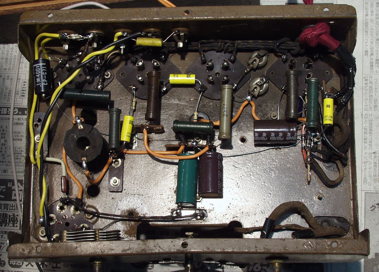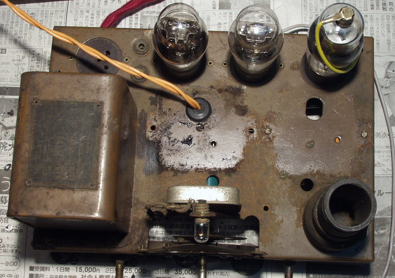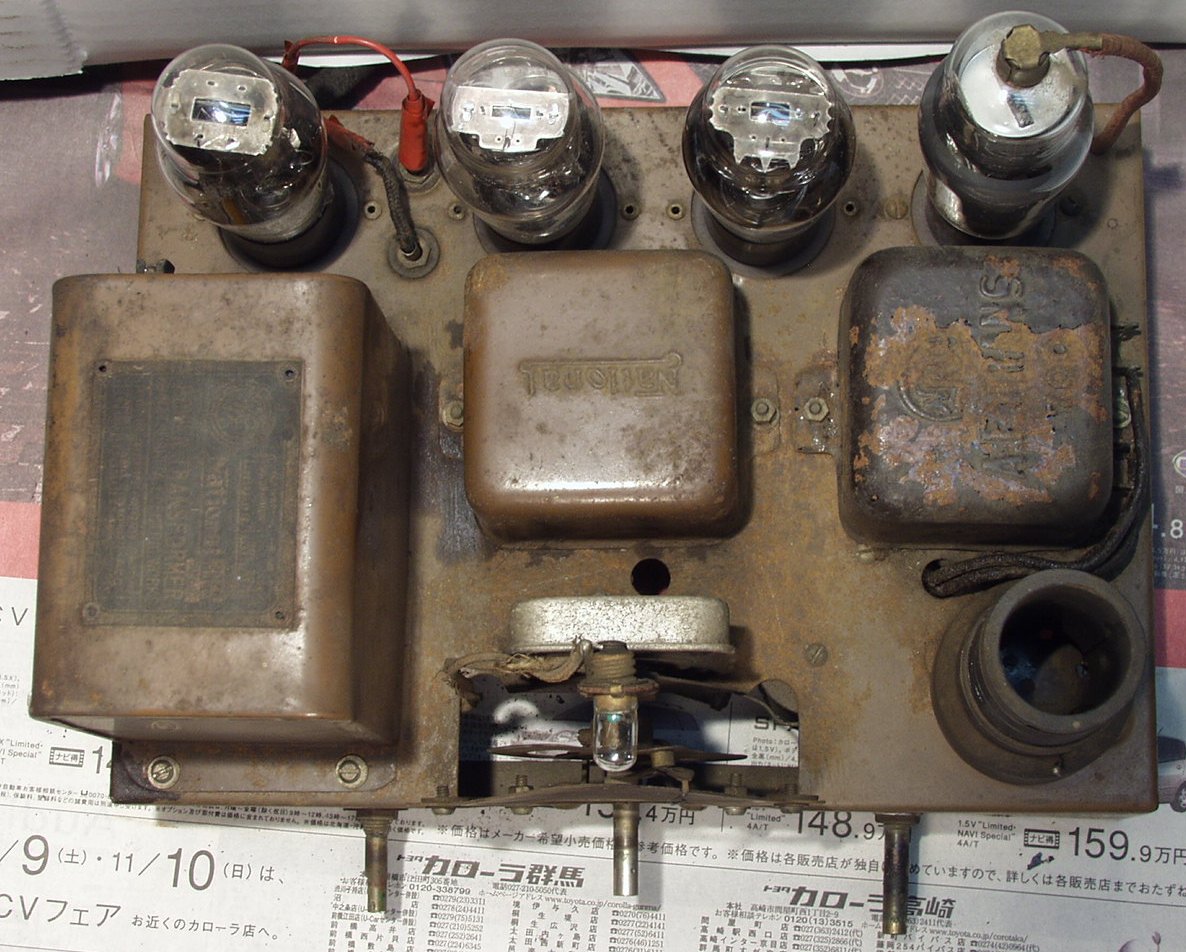 A−1.修理前 シャシ下から真空管部拡大