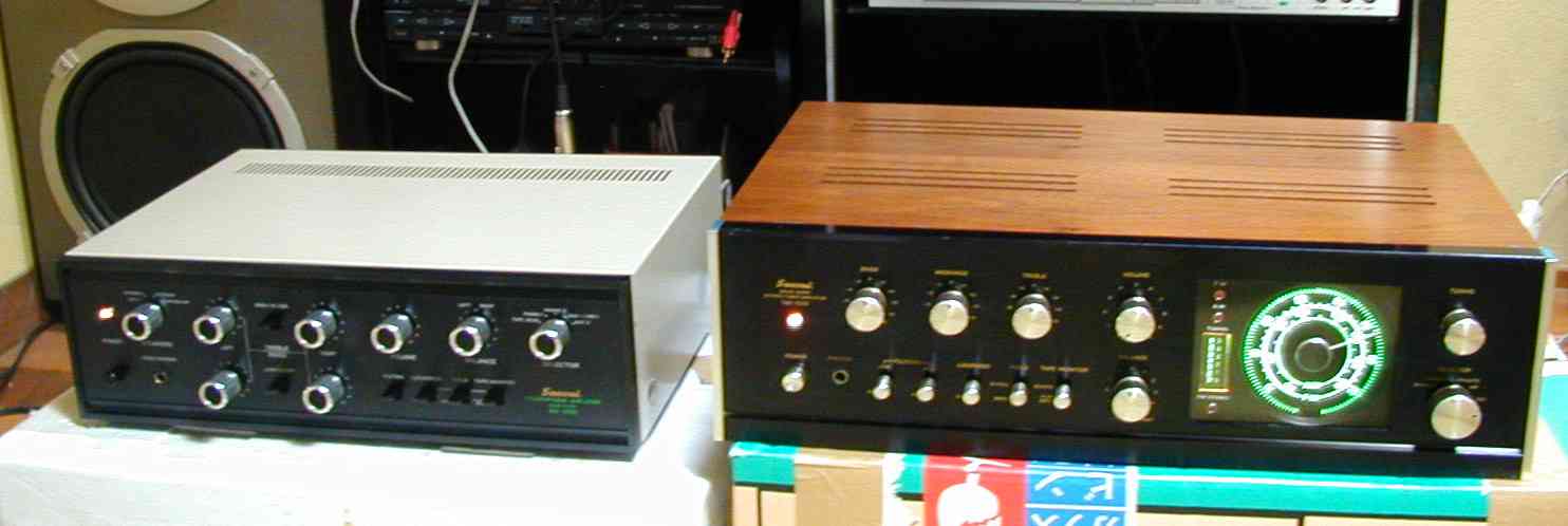 音を出さないで、ボリュームをあげるとノイズが出ます。 アンプが熱くなります。 B. 原因 メインAMPのTR(トランジスター)劣化 フラットAMP、イコライザーAMPのTR(トランジスター)の劣化 C. 修理状況 終段TR(トランジスタ−)4個交換 メインAMPのTR(トランジスター)4個交換 フラットAMPのTR(トランジスター)10個交換、 イコライザーAMPのTR(トランジスター)4個交換 配線手直し、補強 経年劣化による各部ハンダ補正 D. 使用部品 バランス、バイアス調整用 半固定VR 4個 フラットAMP、イコライザーAMP TR(トランジスター) 18個 コンデンサー 4個 終段TR(トランジスター)4個 E. 修理費 15400円 通常修理 S. Sansui AU−555 の仕様(マニアル・カタログより) |