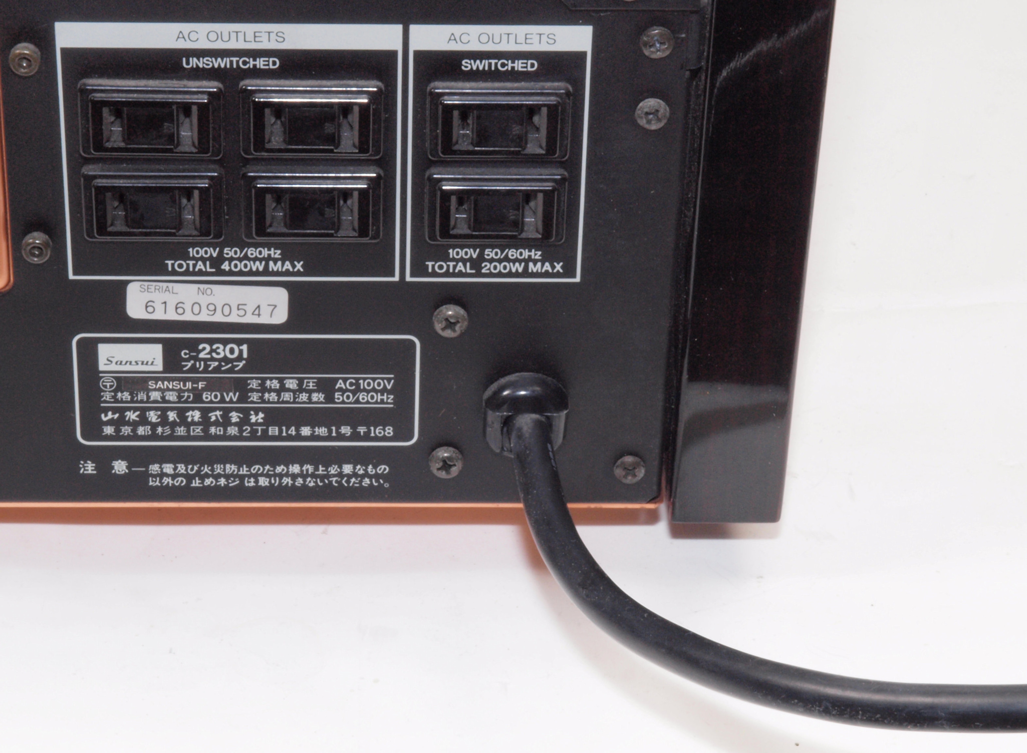 | S. Sansui C−2301 の仕様(マニアル・カタログより) | ||||||||||||||||||