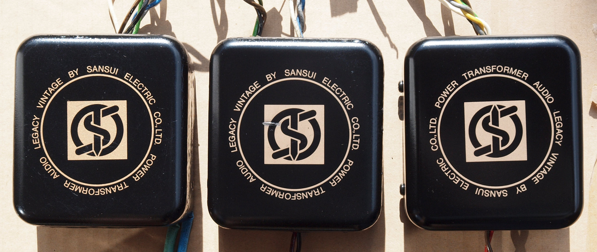 | TC2. 修理後 左側から、他機種の修理後左側電源トランス、4台目本機の修理後左側電源トランス、4台目本機の右側電源トランス(未修理)。 | ||||||||||||||||||