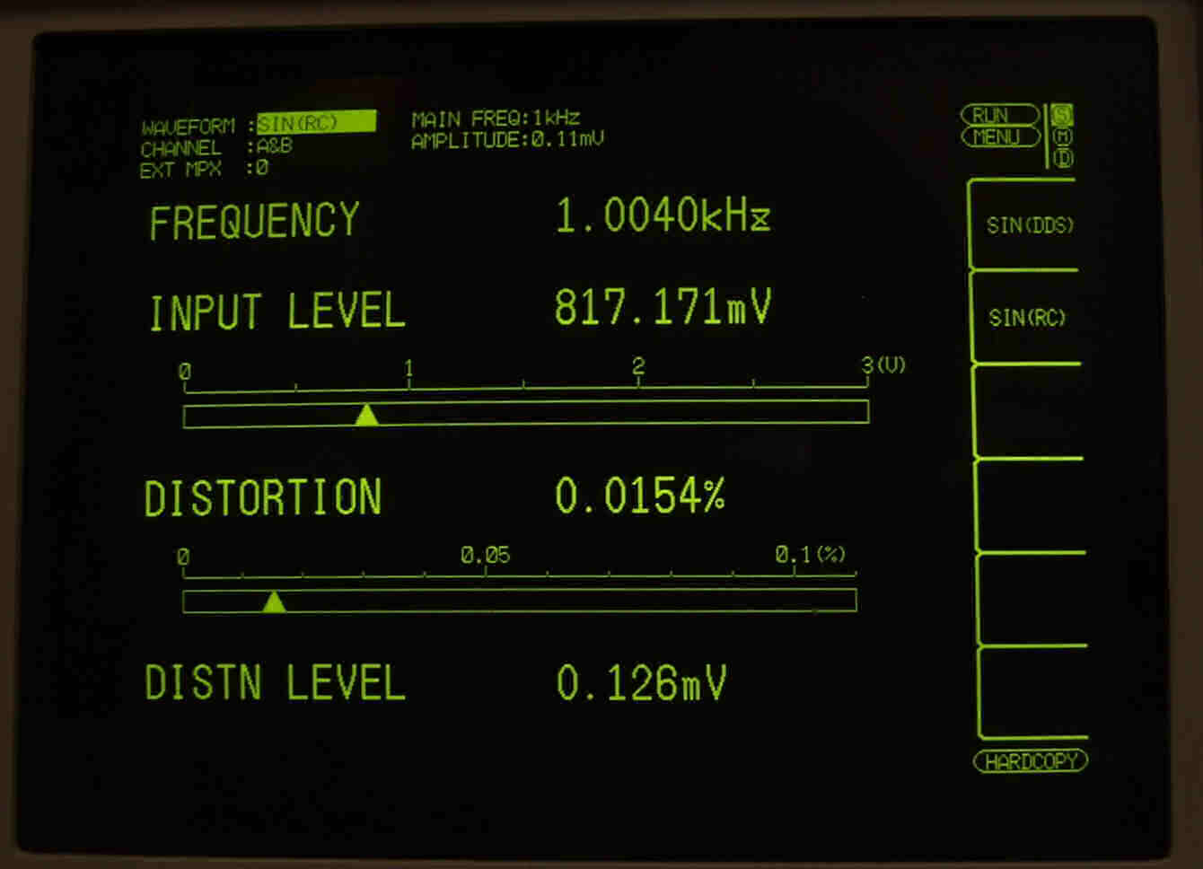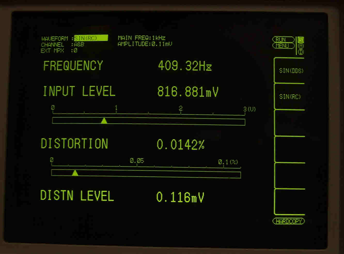 | F. 真剣に調整後、歪み率測定 F1. 出力=0dB 400HZ |