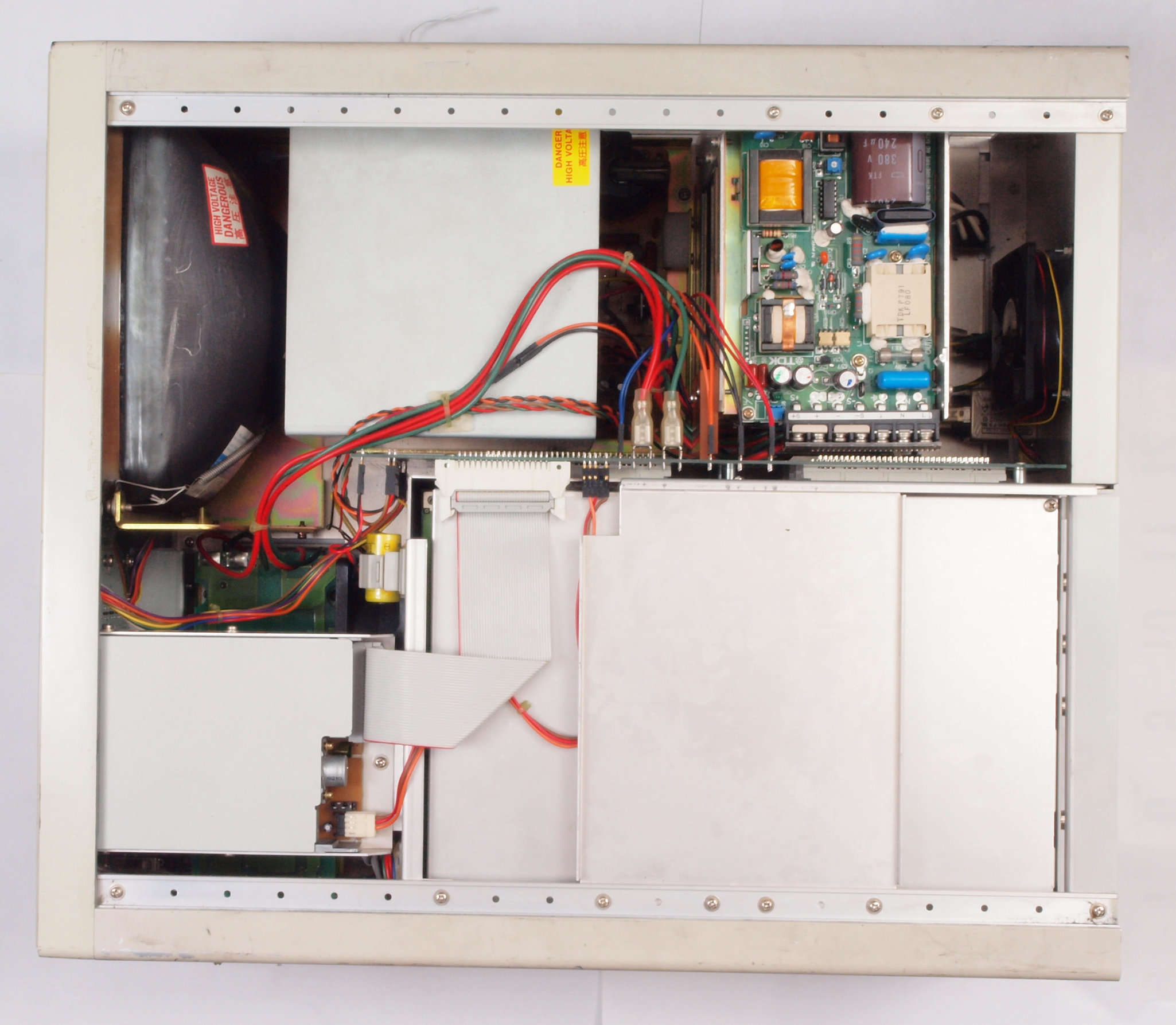 | A. 修理前の状況。 画像をクリックすると、大きく(横幅2050ドット)表示されます。 A11. 点検中 上下蓋・左右側板を取り前から見る |