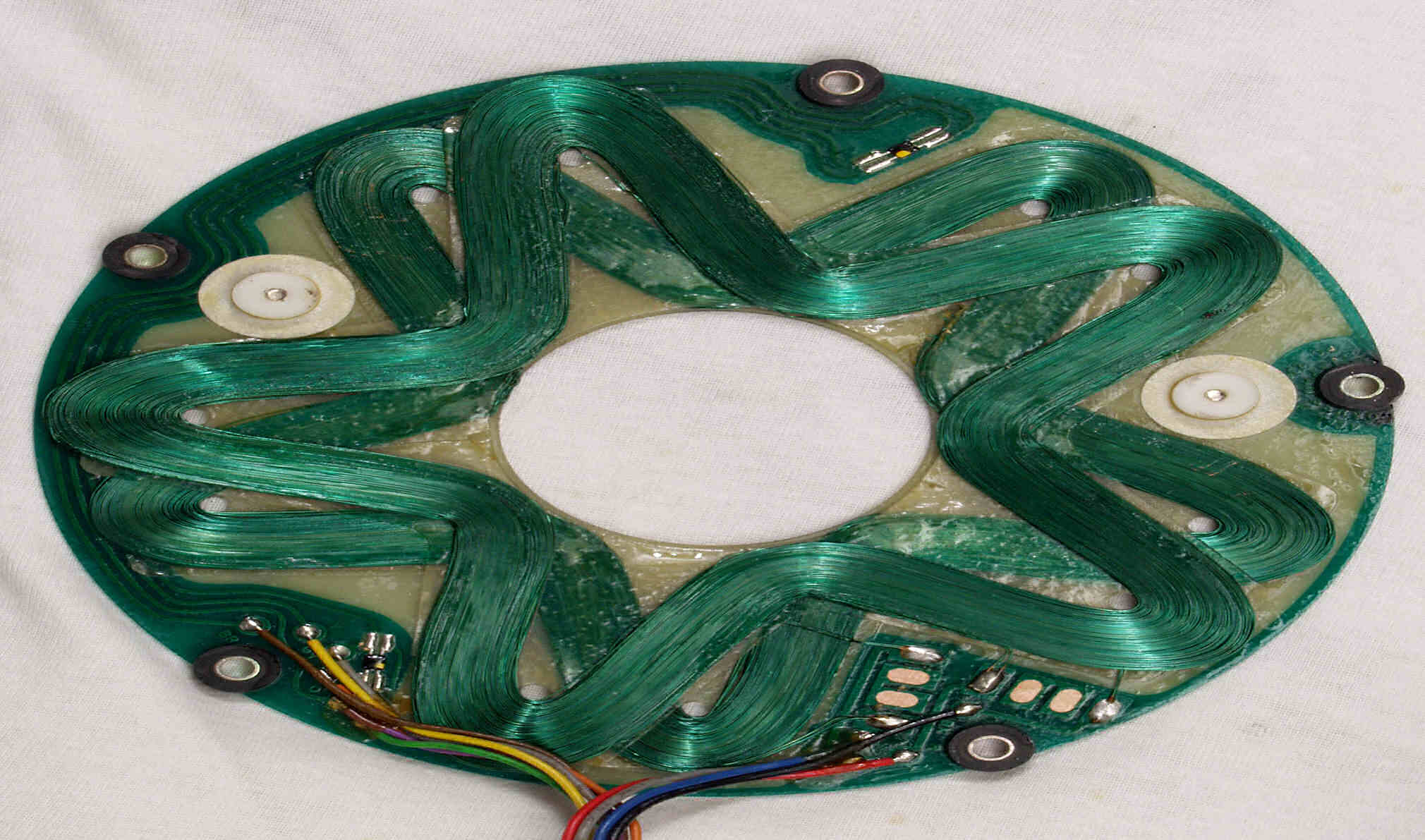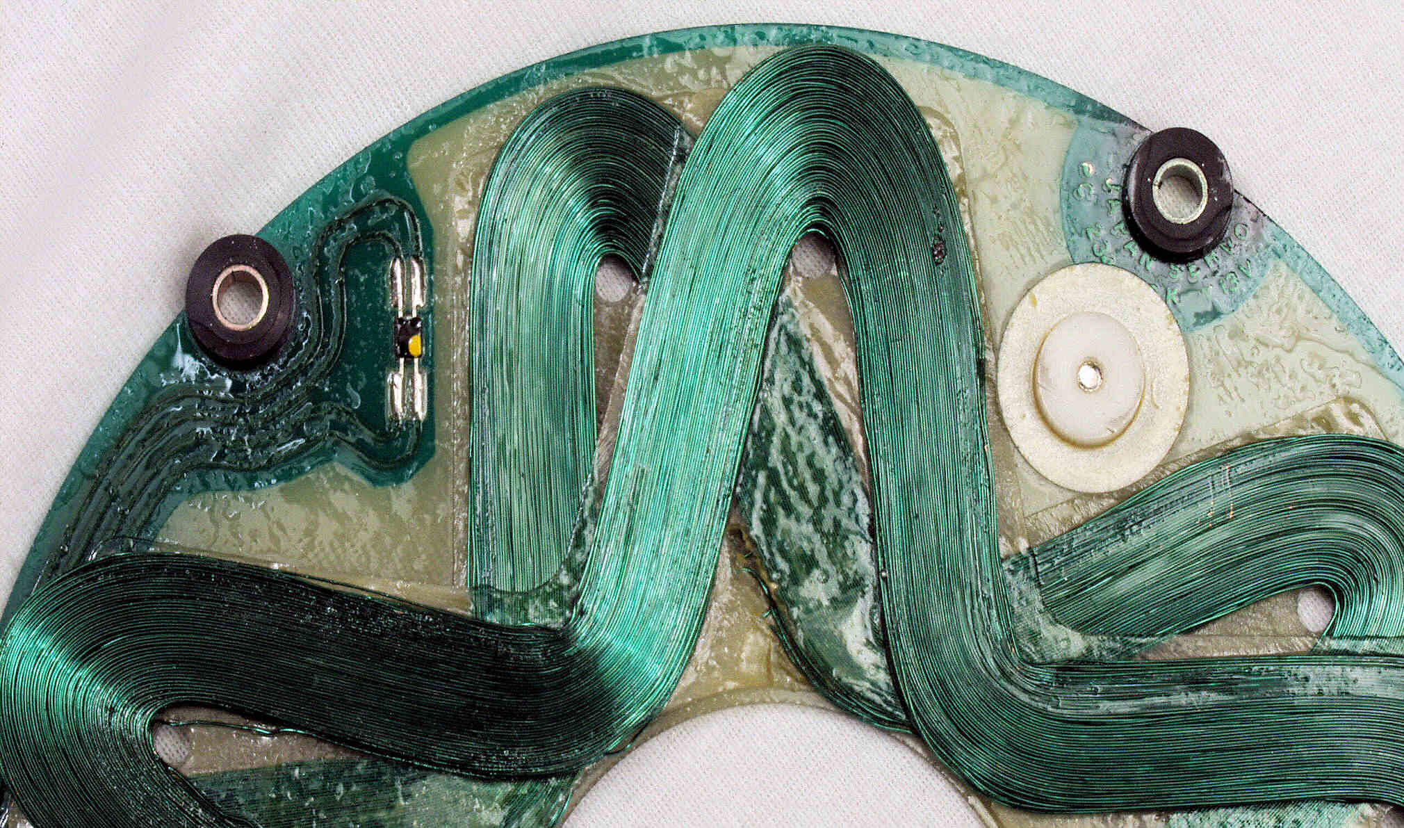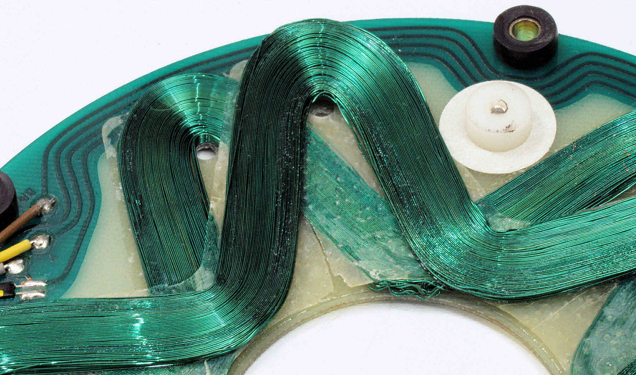CBB. 修理前 モーター分解、回転子下磁石拡大、FGコイルのパターンが写っている。