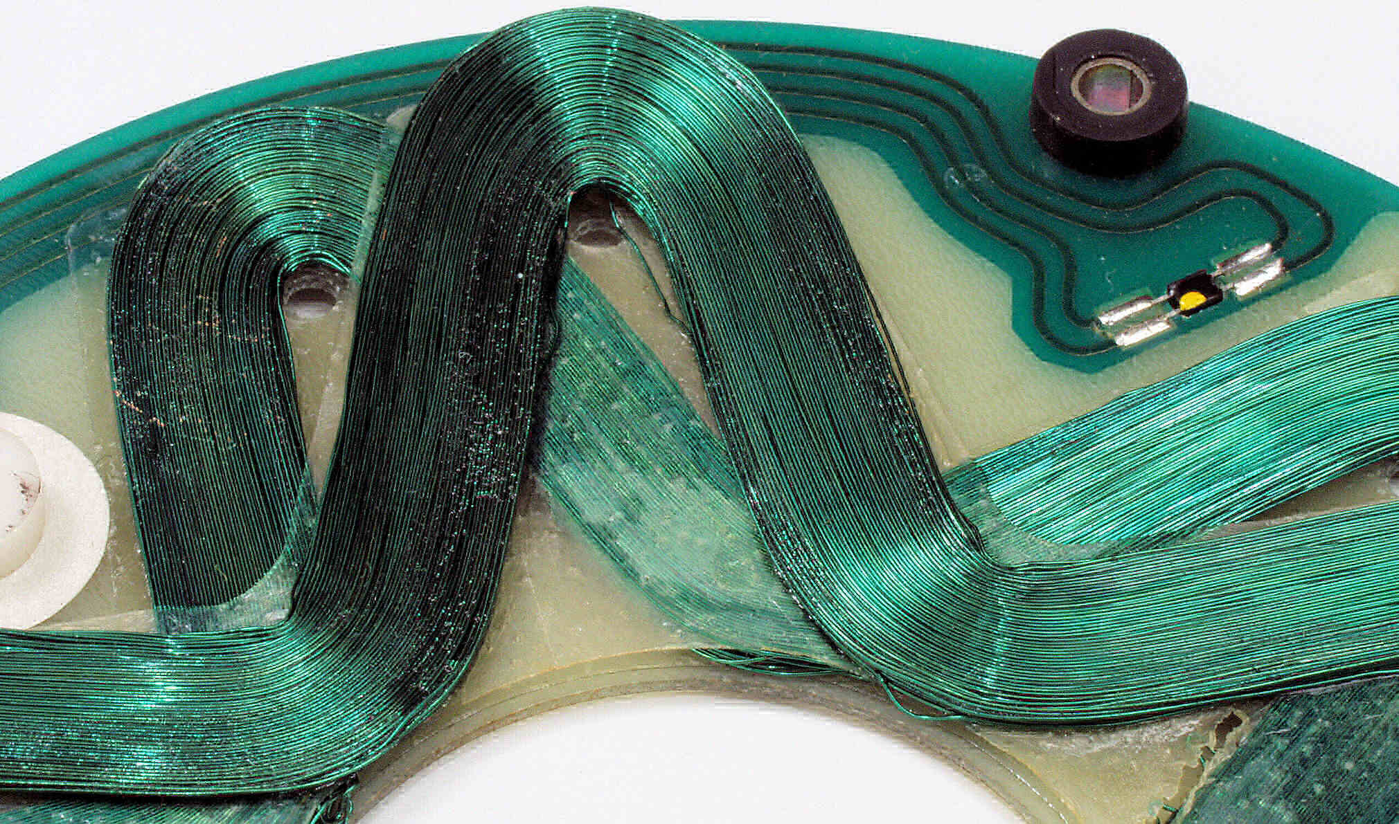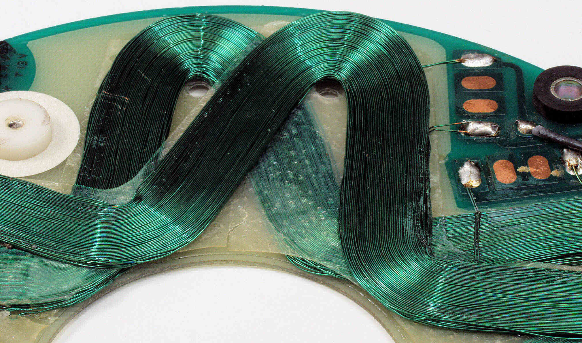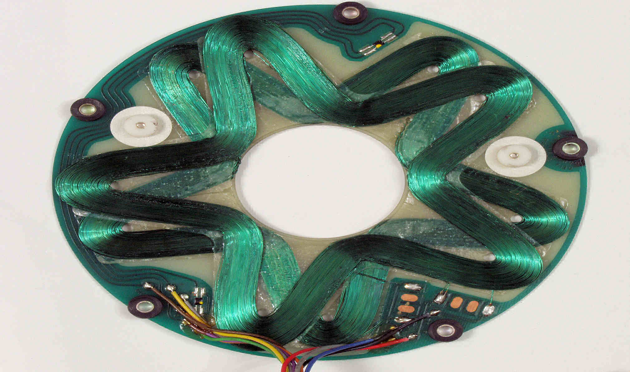 CBB. 修理前 モーター分解、回転子下磁石拡大、FGコイルのパターンが写っている。