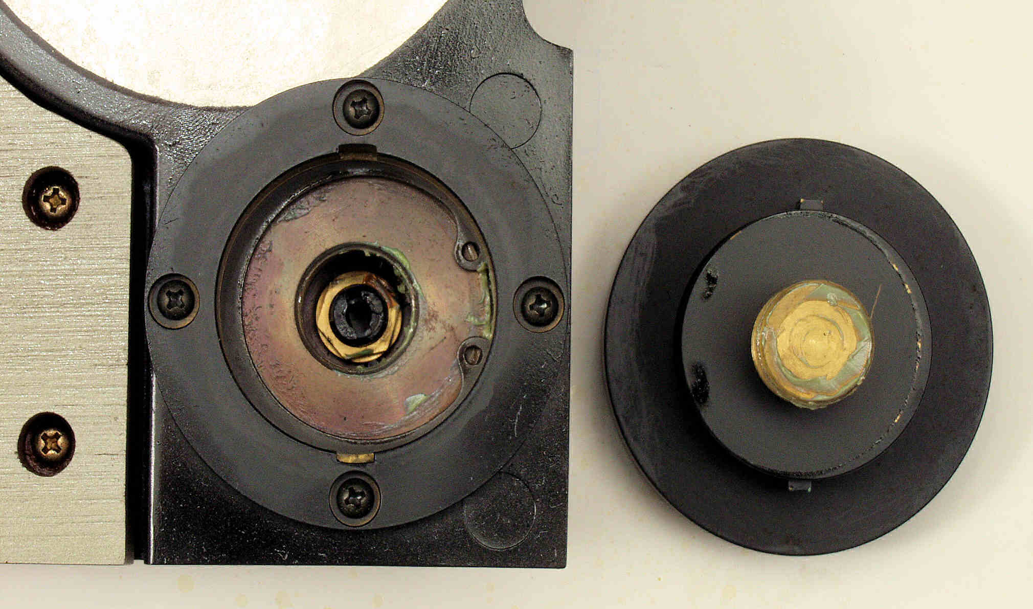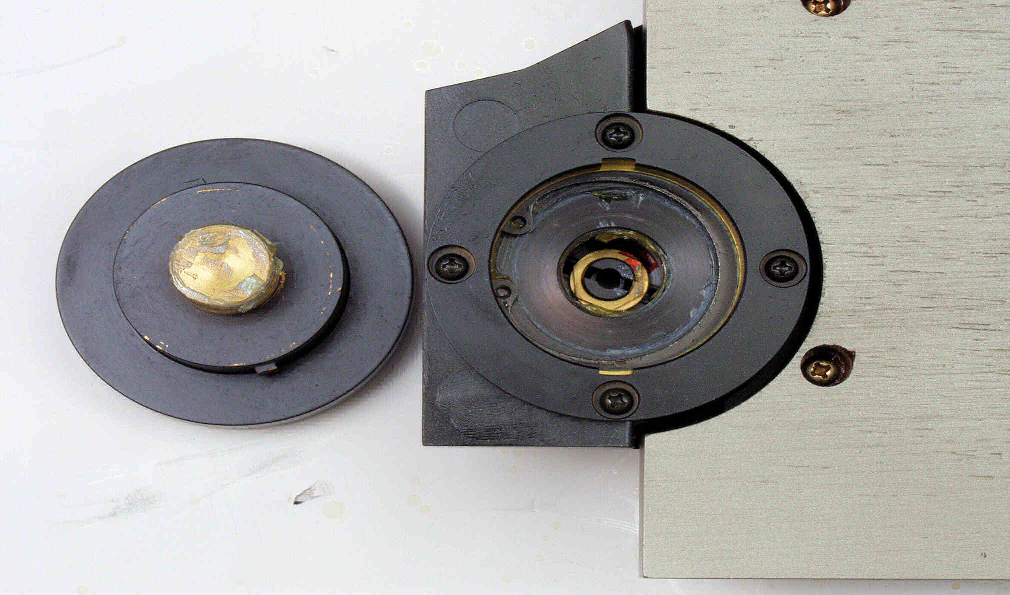 A1B. 点検中 タンテーブル軸の緩衝材! もう少し柔らかい素材にしたい。