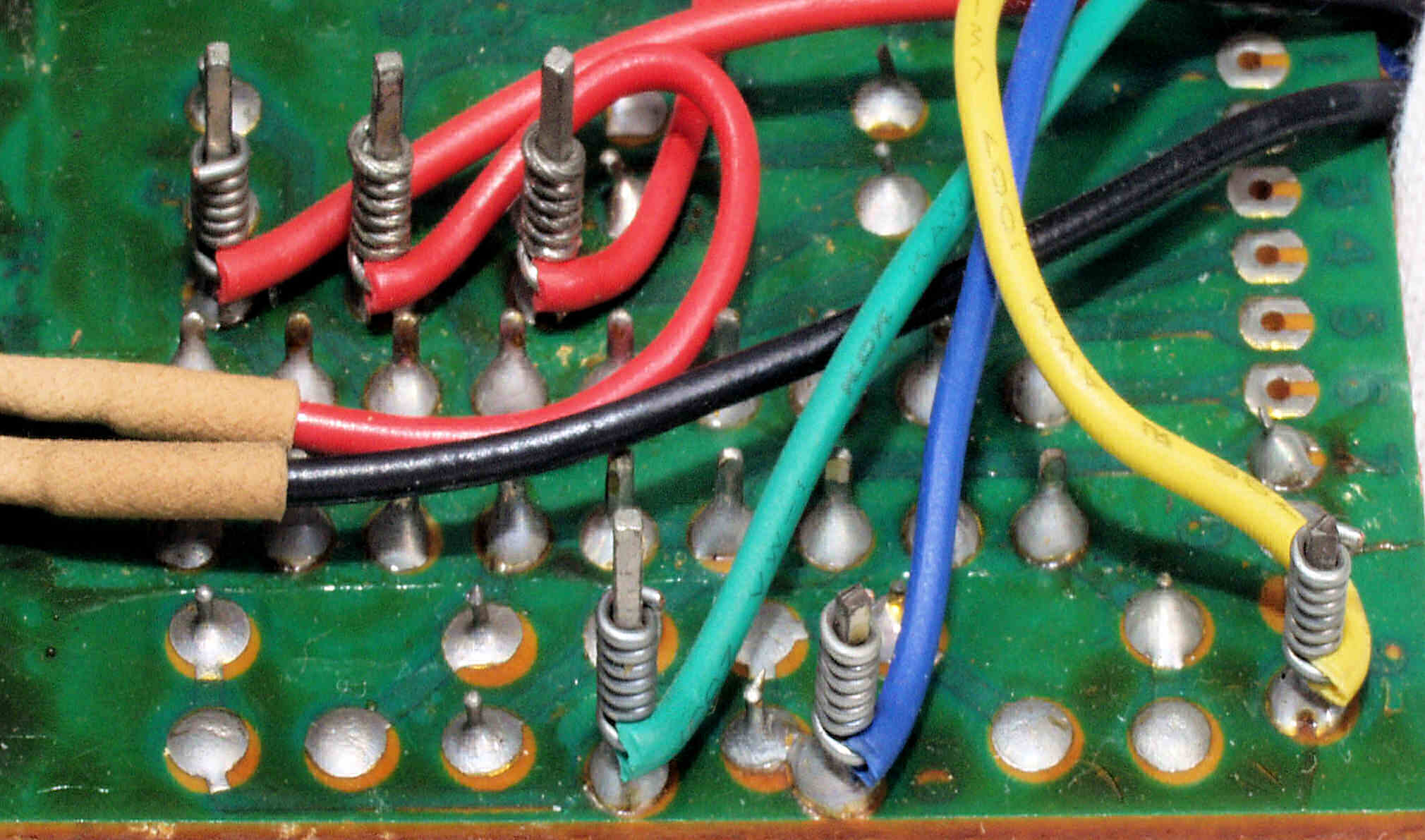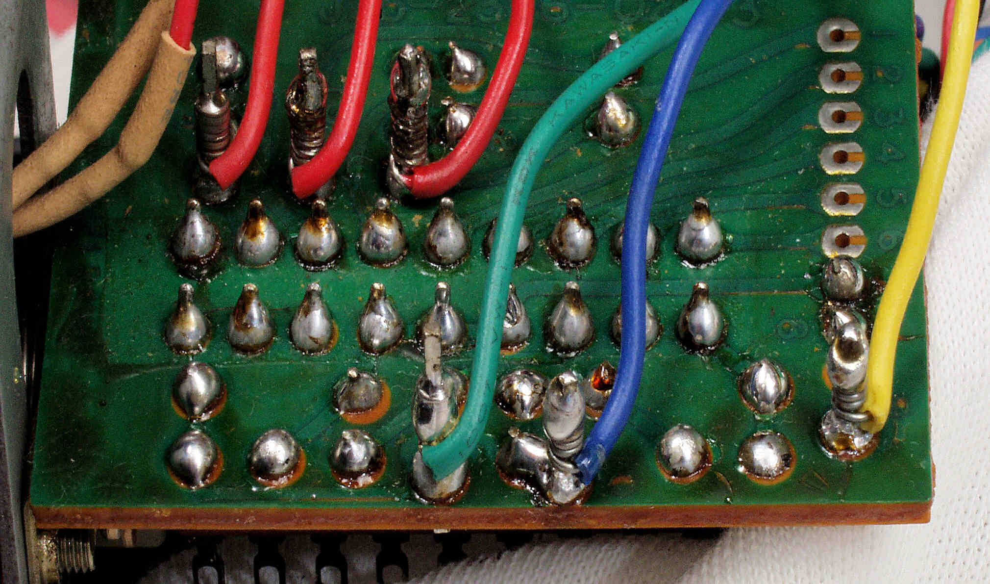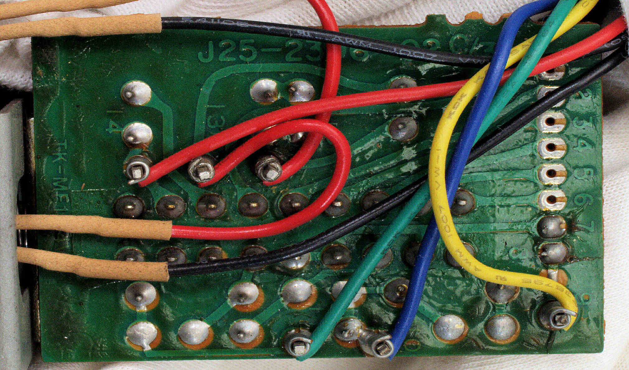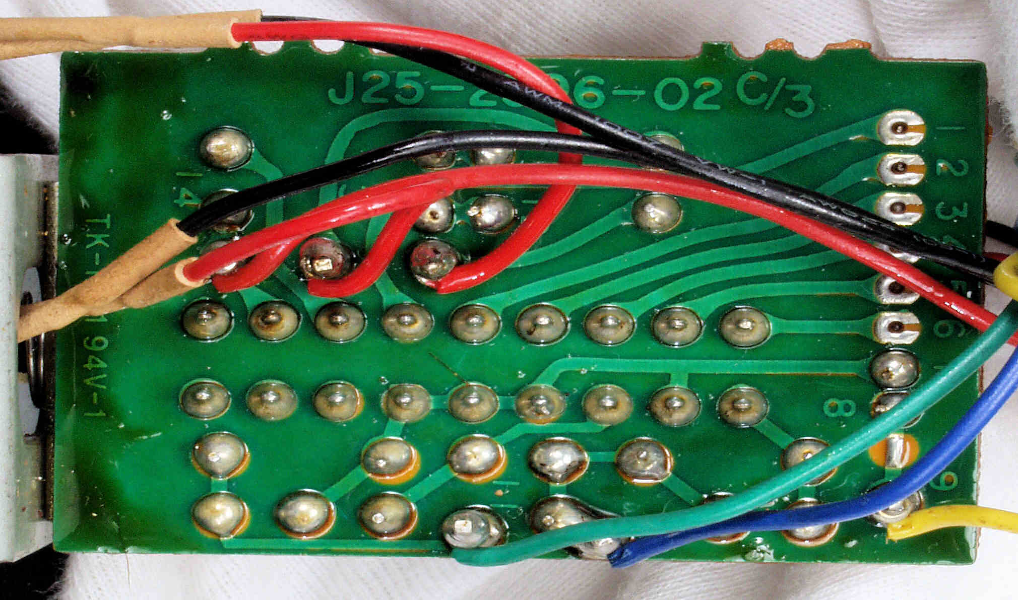 C5B. 修理(半田補正)後 SW基板裏、 ラッピングに半田をしみこませる。