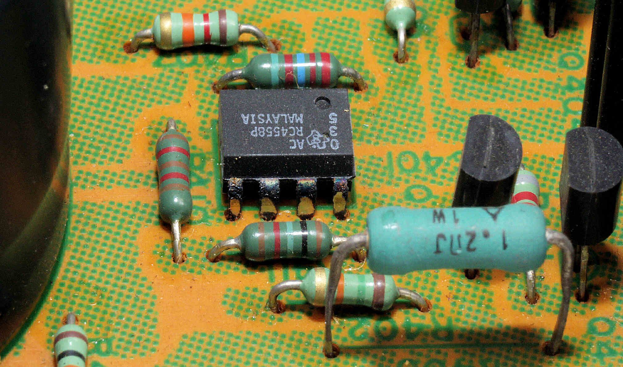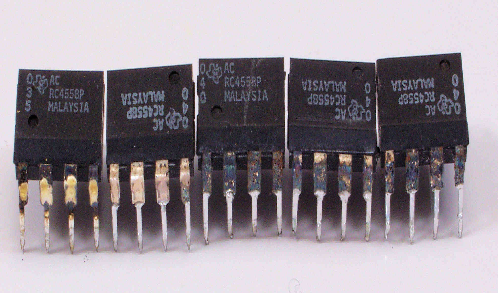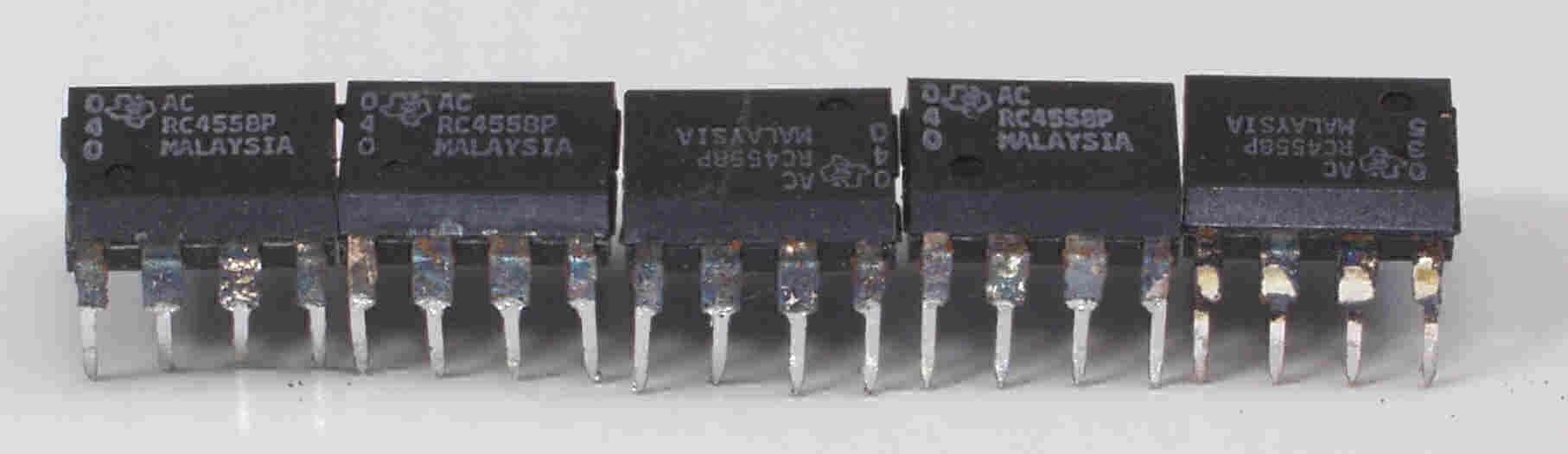 CFC. 交換部品、足が真っ黒に腐食したOP−AMP、反対側
